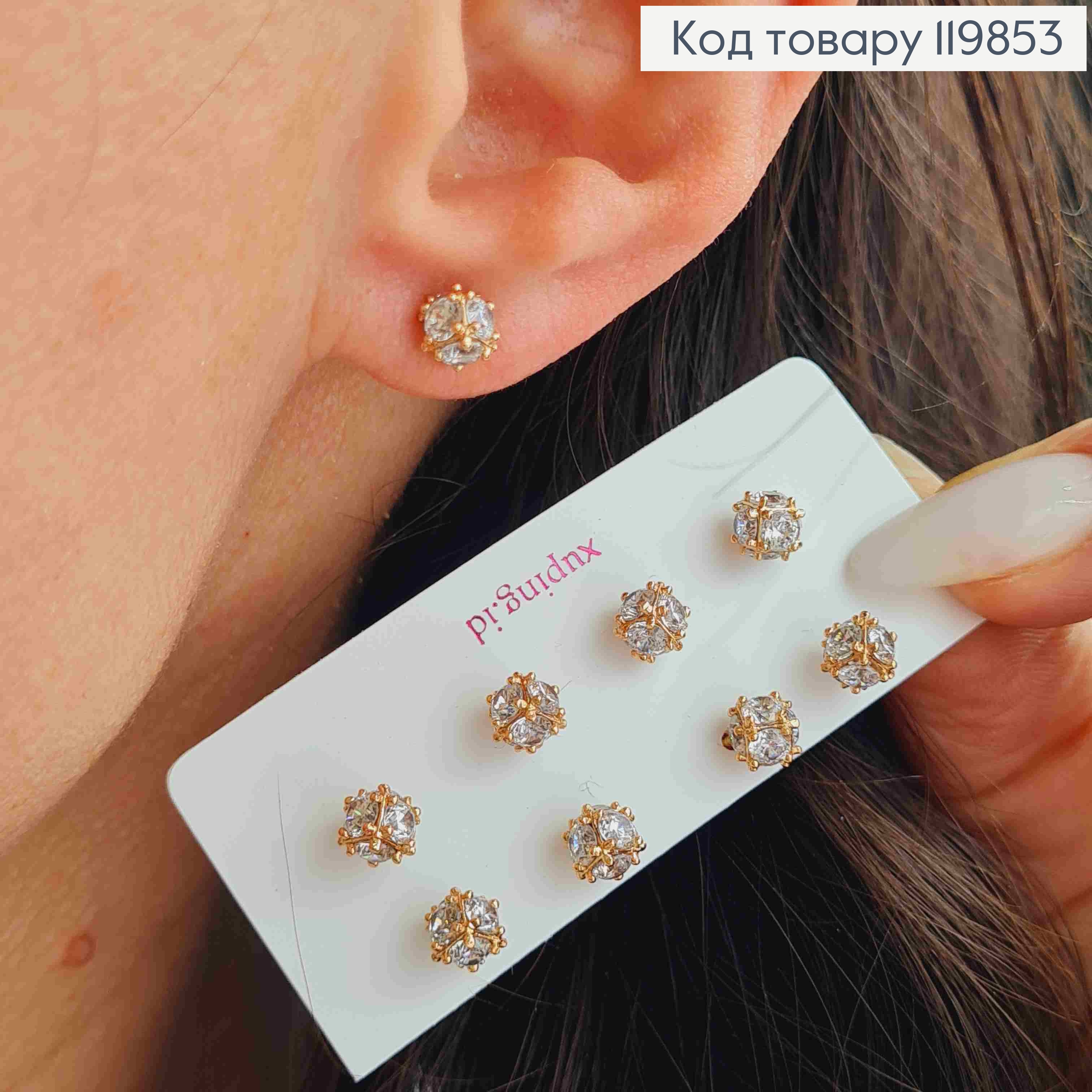 Набор: серьги гвозди "КУБ" с блестящими камешками, 4пар/уп, размер 5мм, XUPING 18К