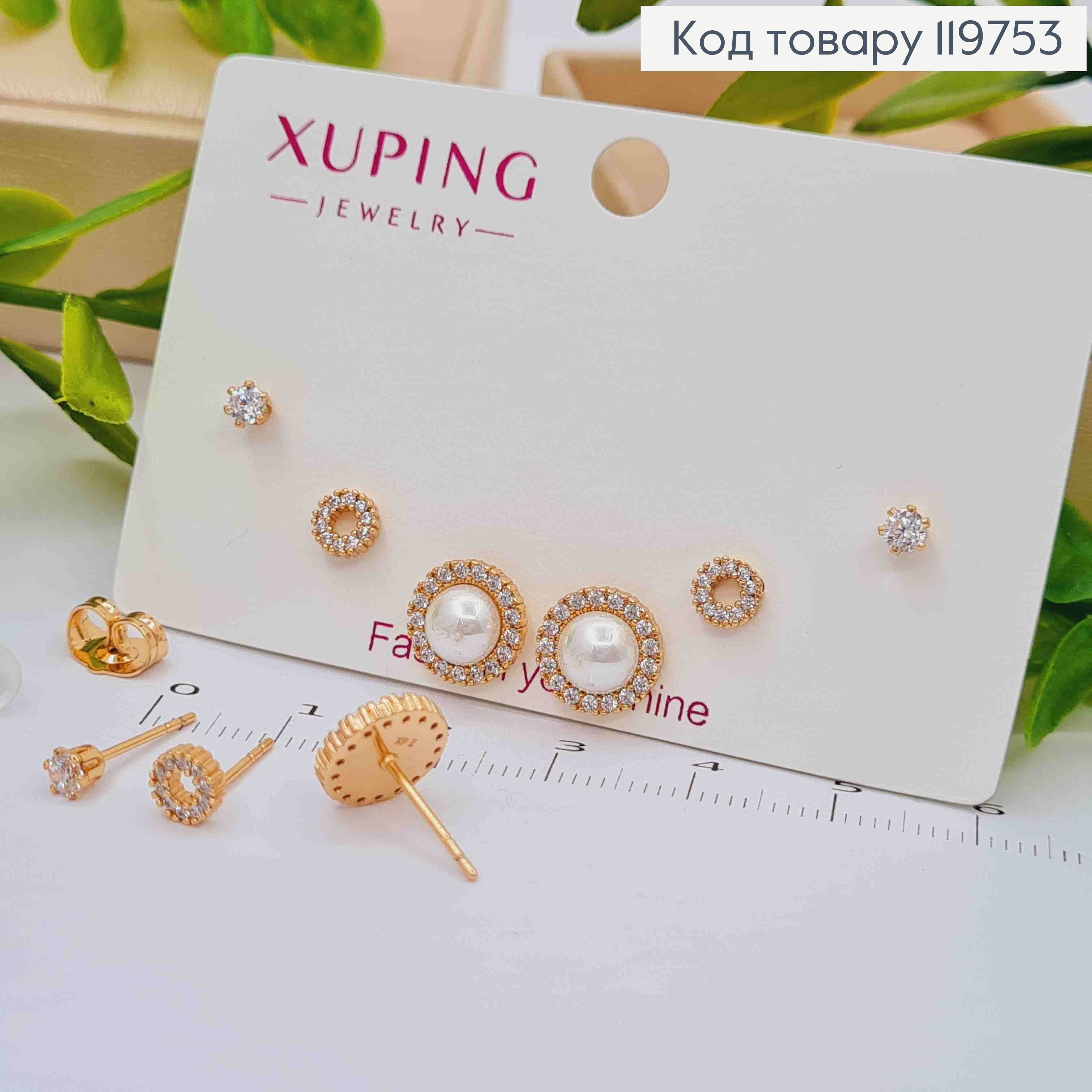 Серьги гвоздики украшены Блестящими камешками и Жемчужинами, 3мм; 5мм; 9мм, Xuping 18К