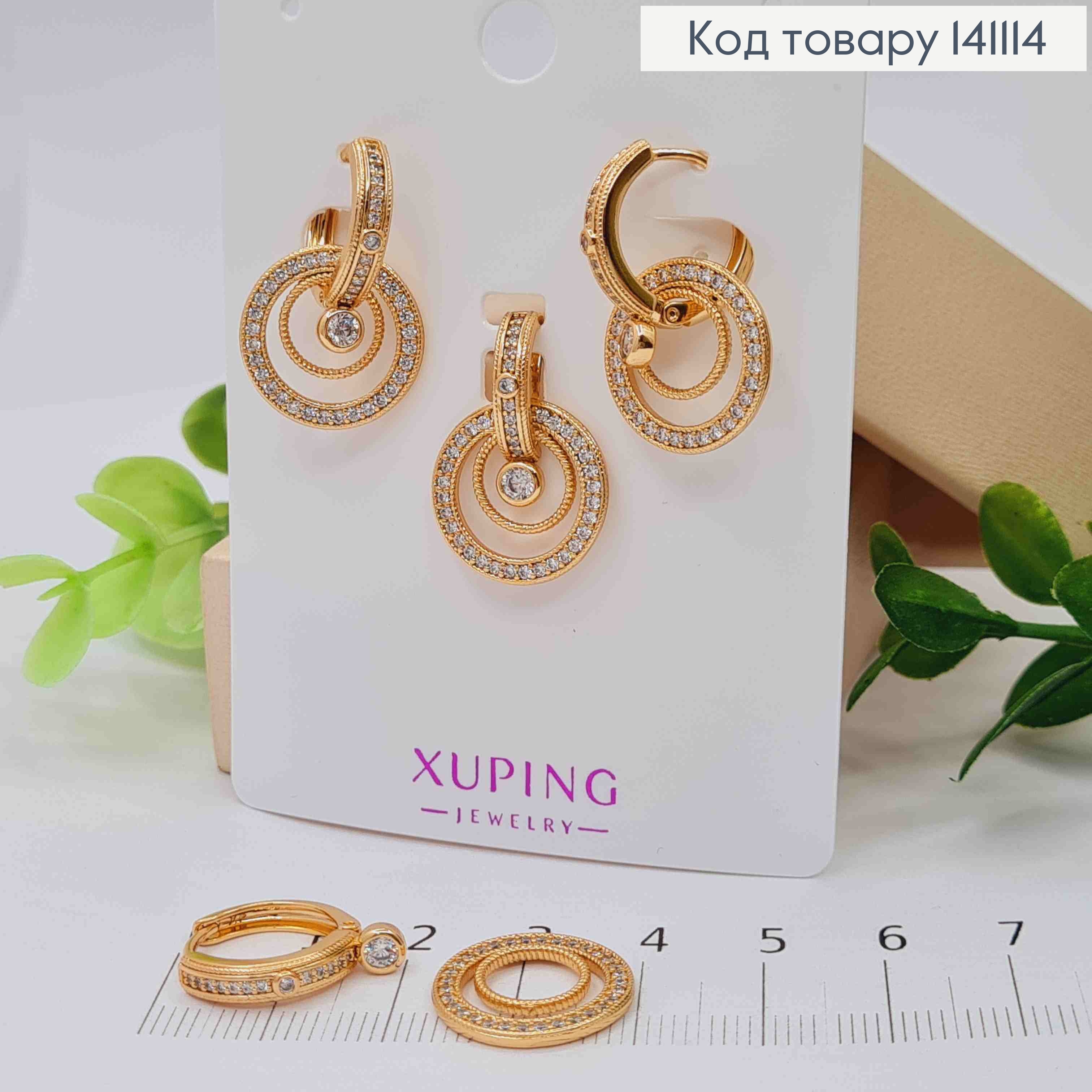 Набор: Серьги кольца "Кольца Сатурна" (1,4+1,6см) и кулон "Кольца Сатурна" (2,4см), Xuping 18К