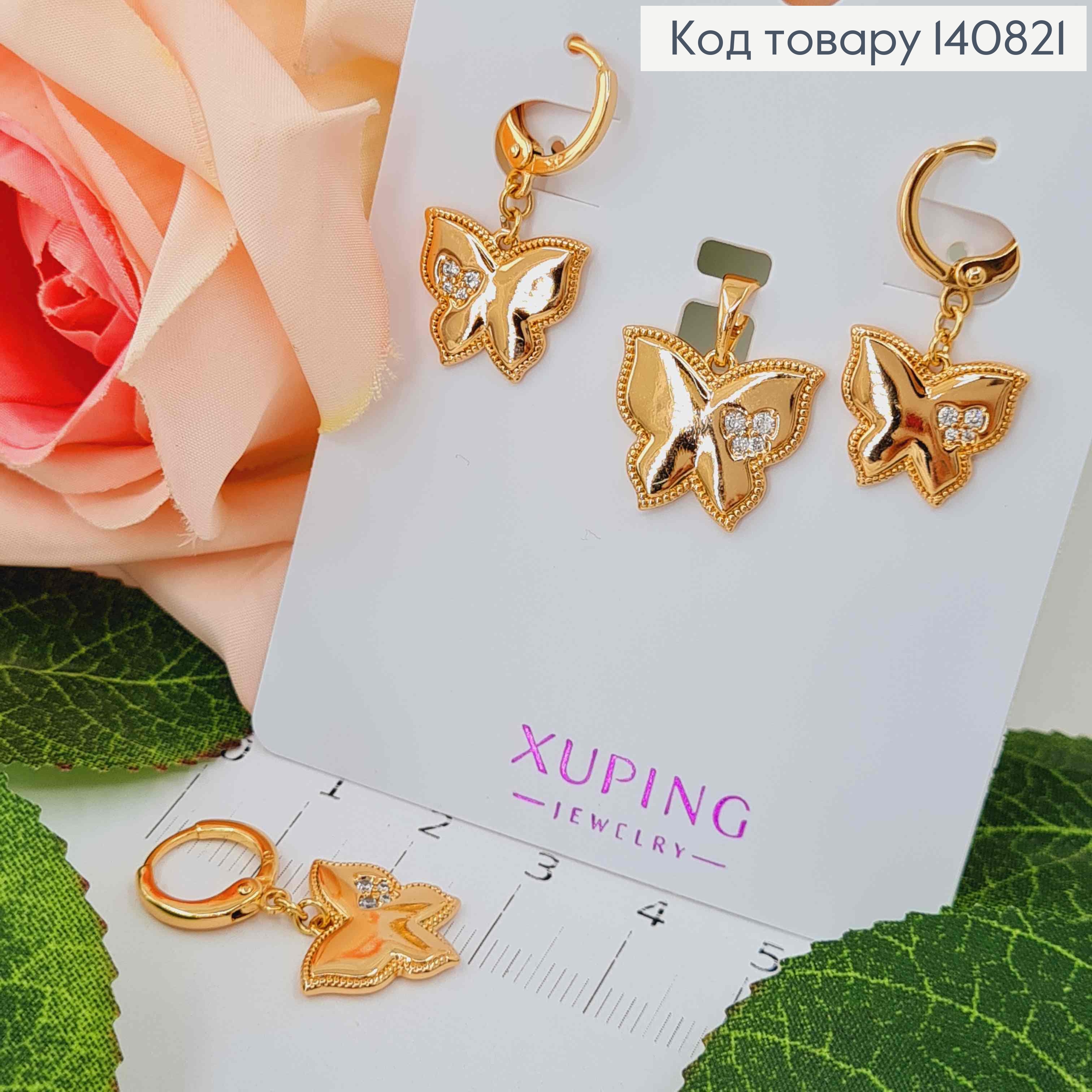 Набор, Серьги кольца, Бабочки с камнями 1см, и кулон Бабочка 1,4см, Xuping 18К