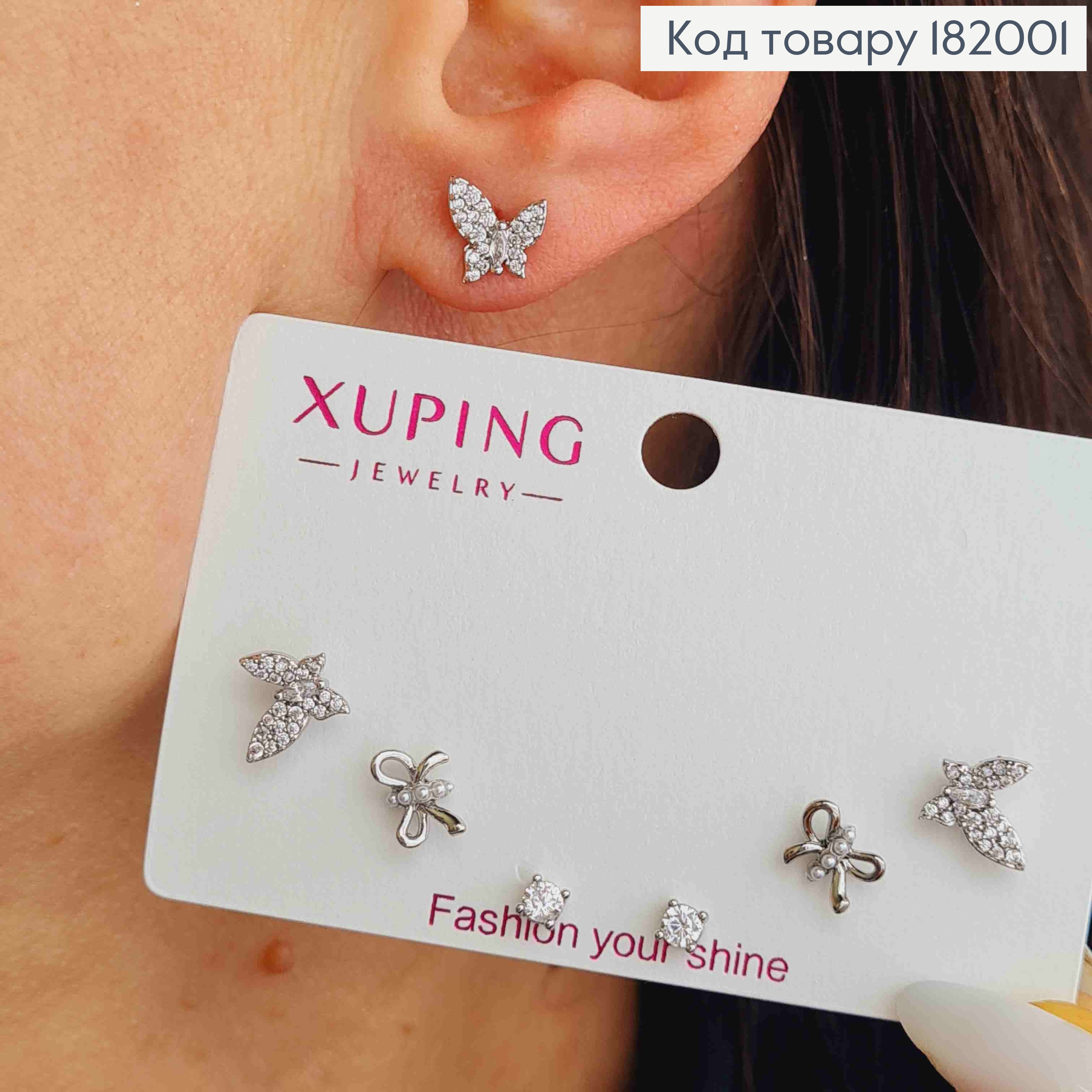 Набор: серьги гвоздики "Бантики", "Бабочки"(3пары/уп), размер 8мм; 5мм; 3мм, Xuping