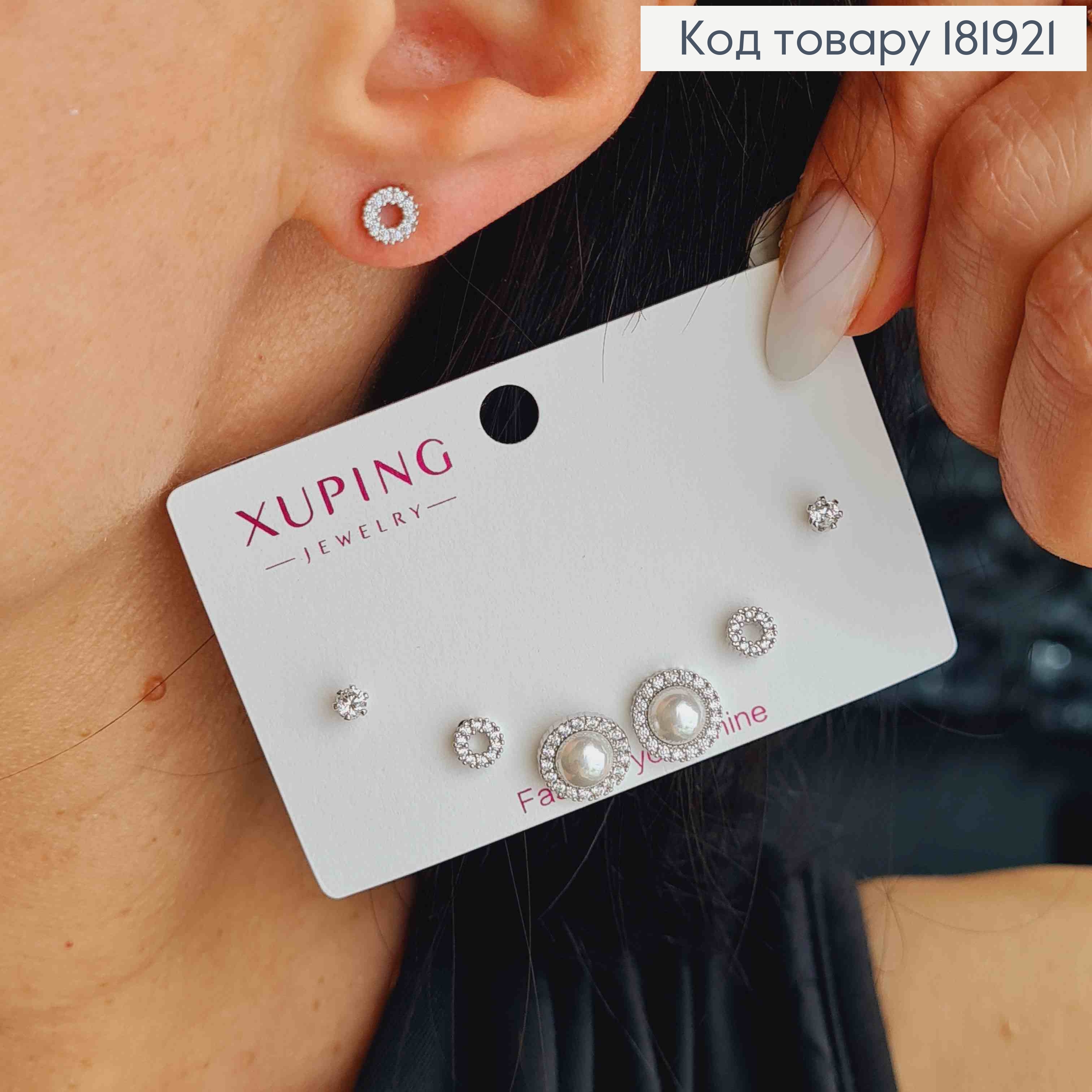 Набор: серьги рождественские гвозди Блестящие камешки и Жемчужинки(3пары/уп), размер 3мм; 5мм; 7мм, Xuping 181959 фото