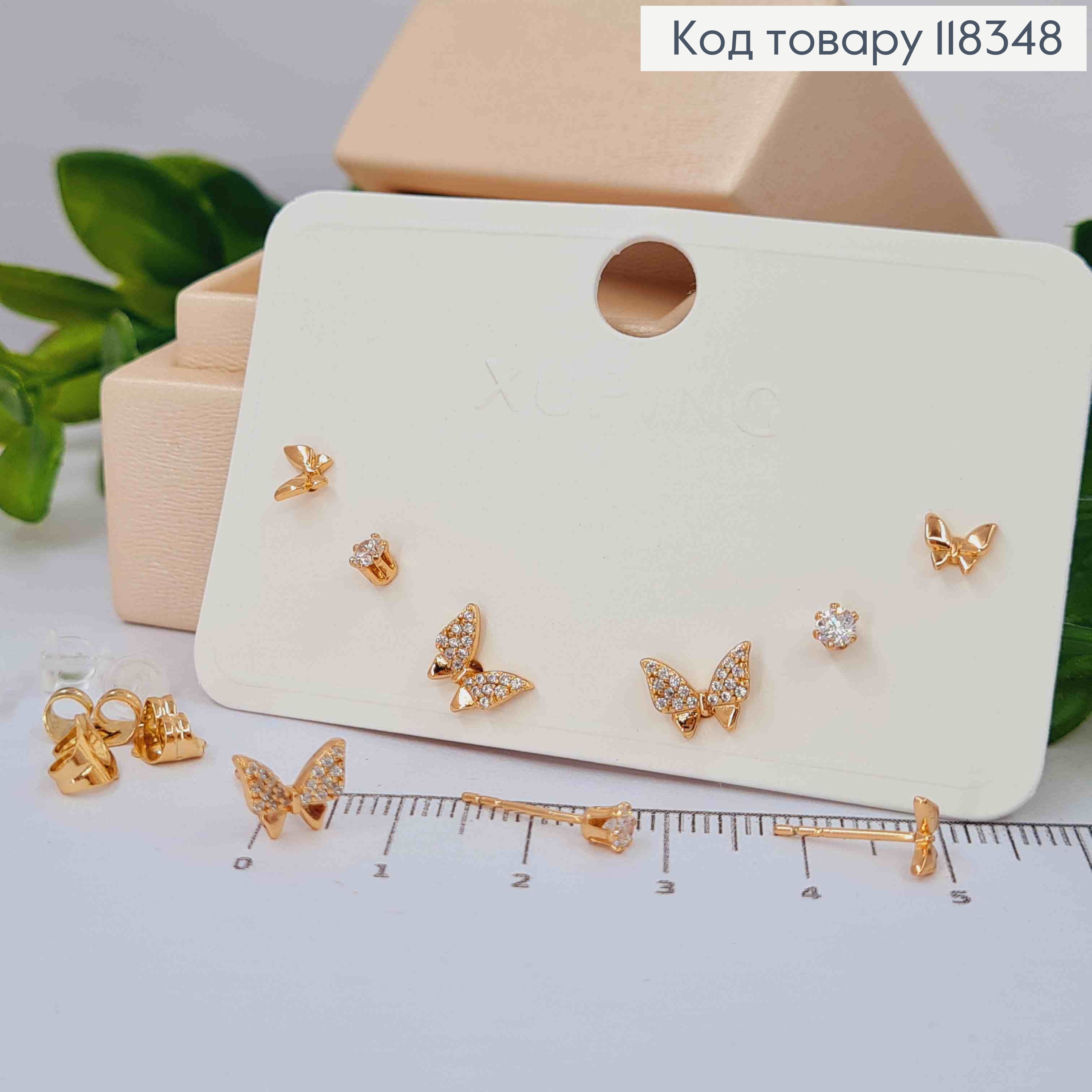 Набор сережек (3п), Блестящий камешек + Бабочки в камешках, Xuping 18К