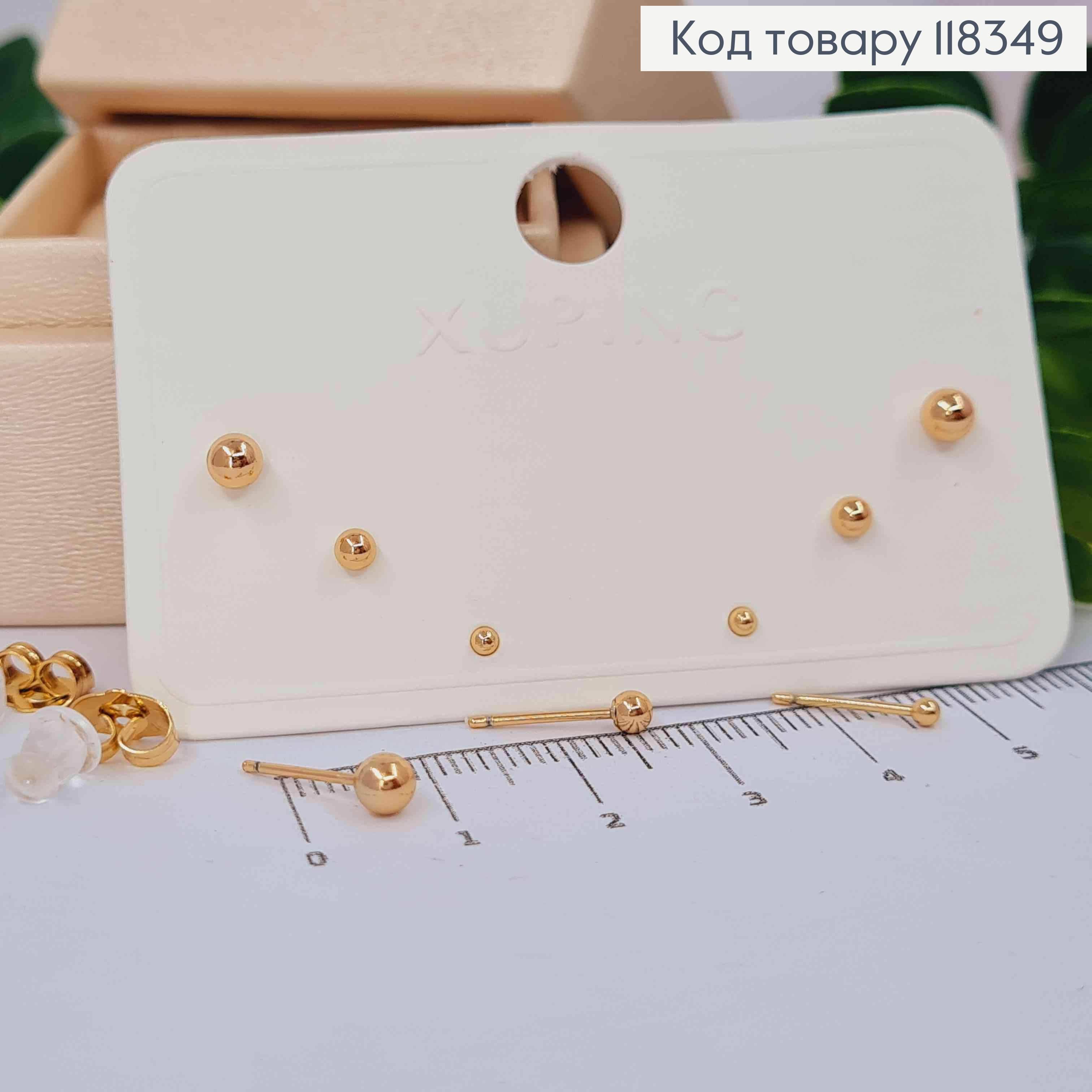 Набор серьг (3п), Шарики, 2мм; 3мм; 4мм, Xuping 18К