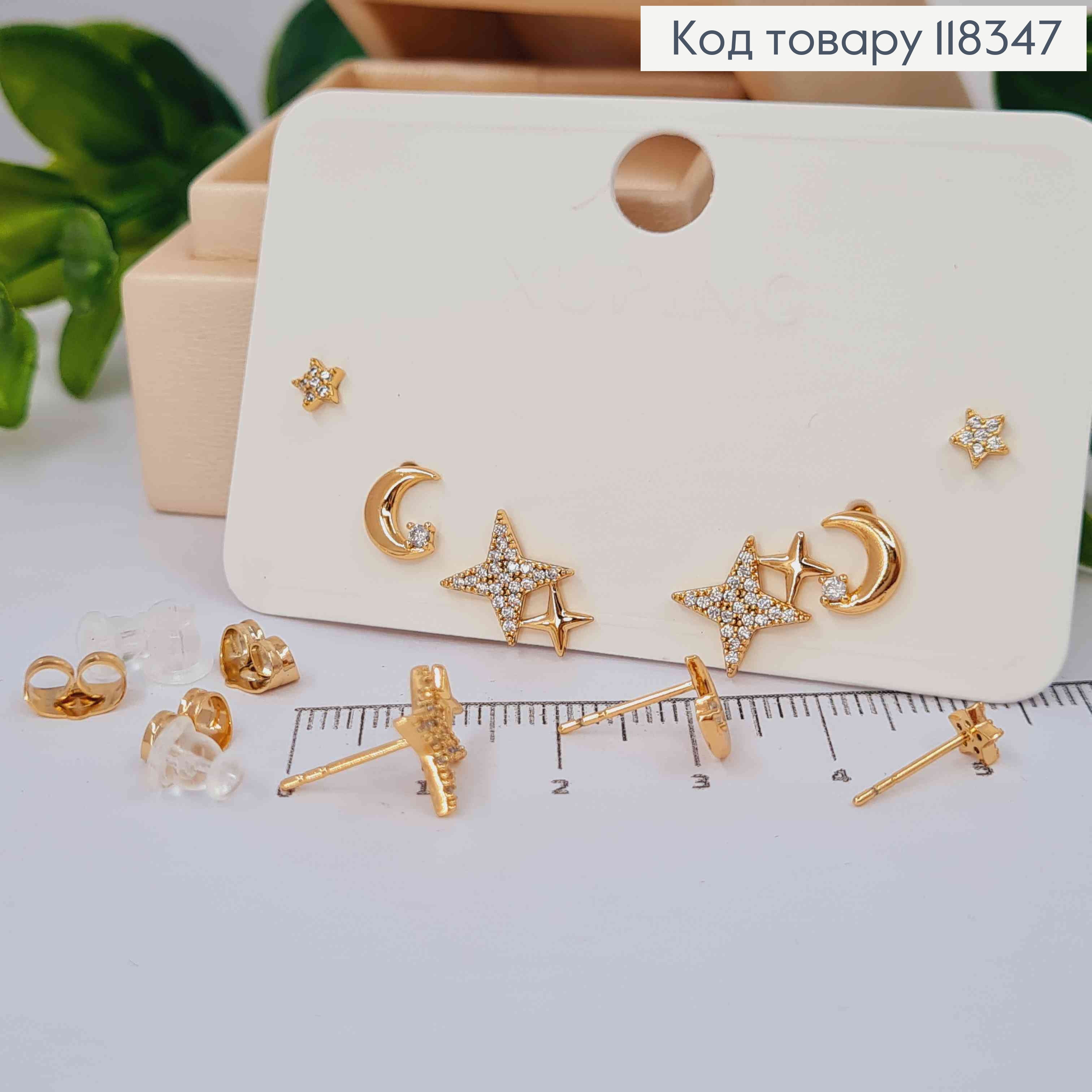 Набор сережек (3п), Луна + Звездочки в камнях, Xuping 18К