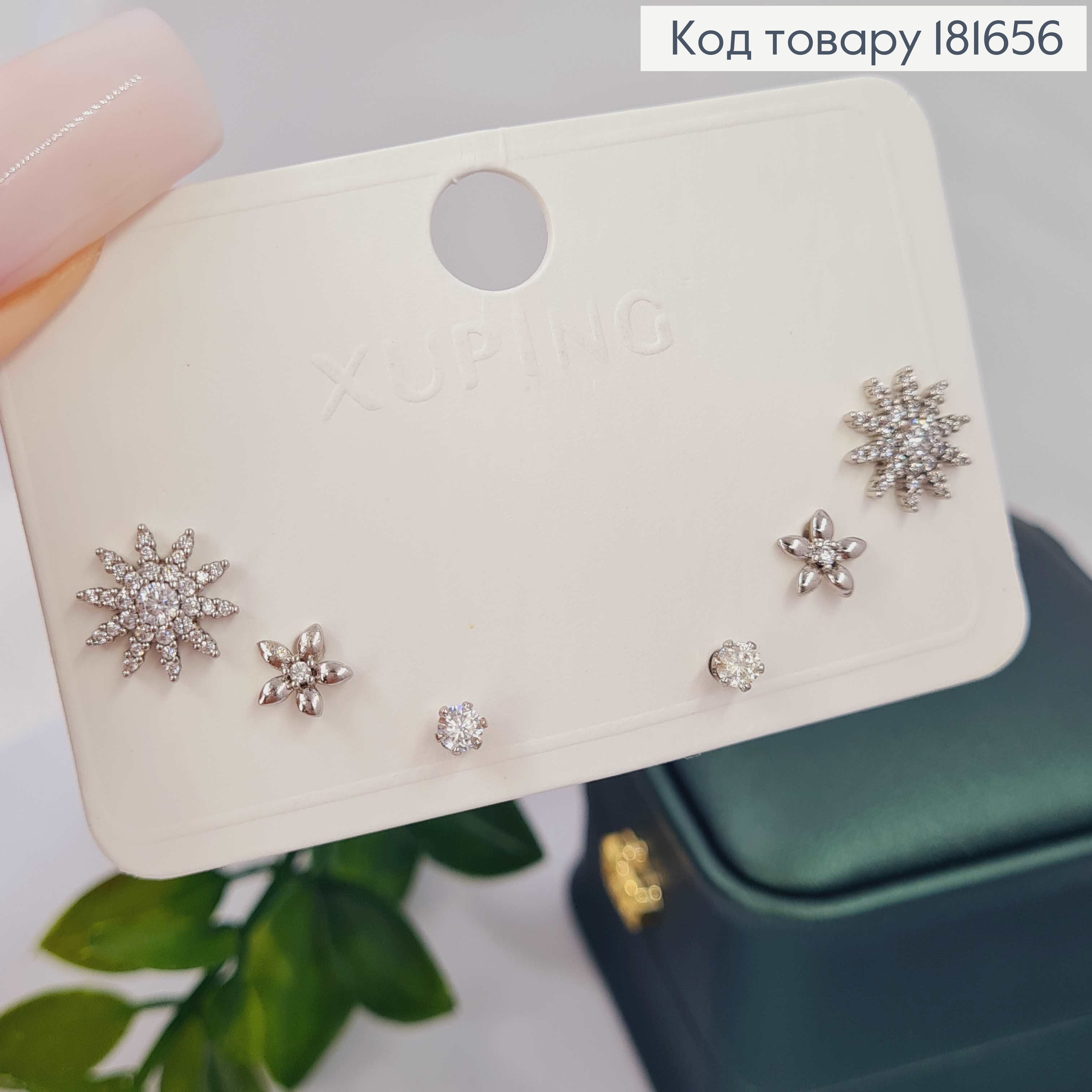 Набор сережек родованых (3п), Камешок + Цветочки с камнями, Xuping