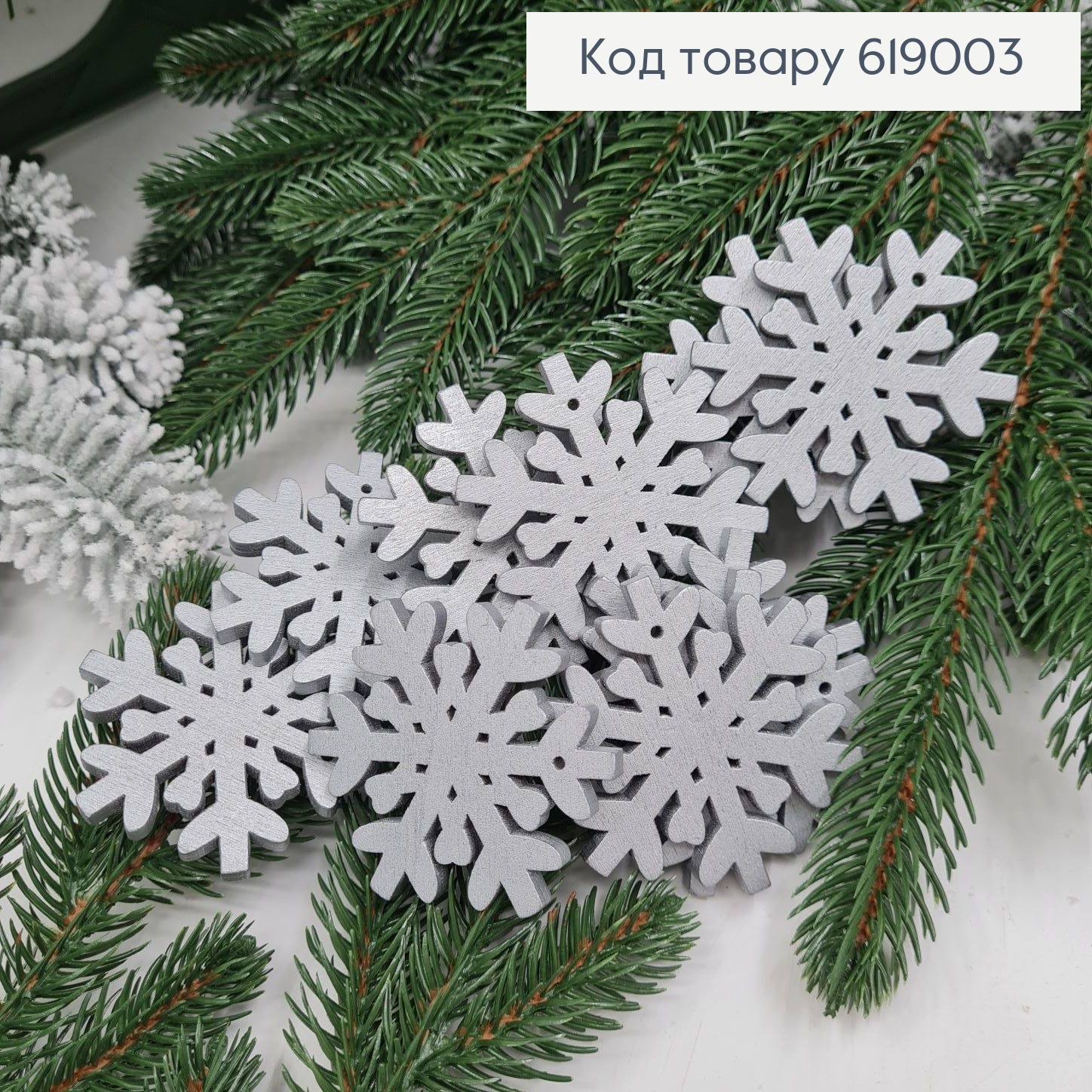 Набор снежинок деревянных серебряных д. 5,5 см 10 шт.