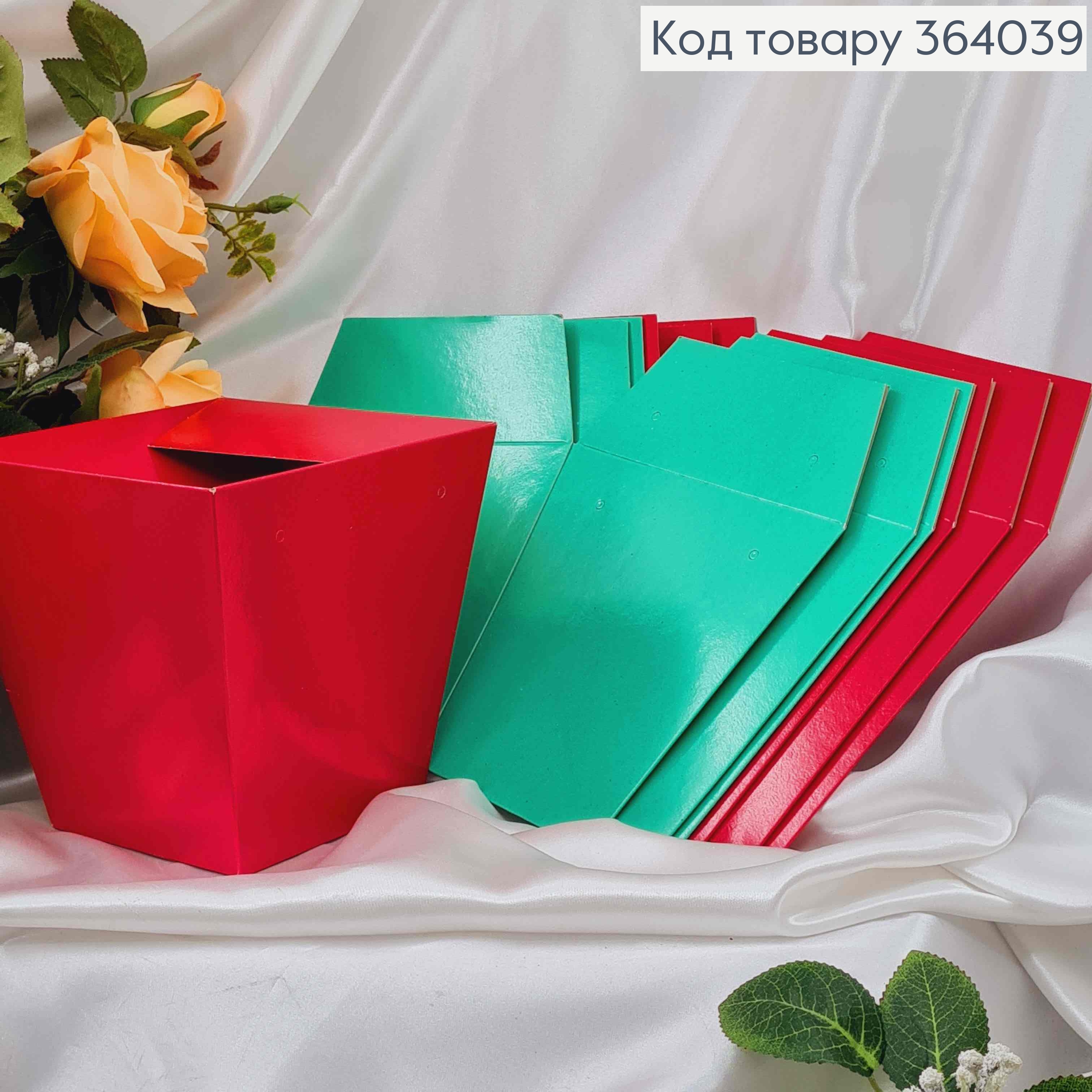 Флористическая сумочка глянцевая КРАСНАЯ, конусная из пластик. ручками 12*12*12,5см 364042 фото