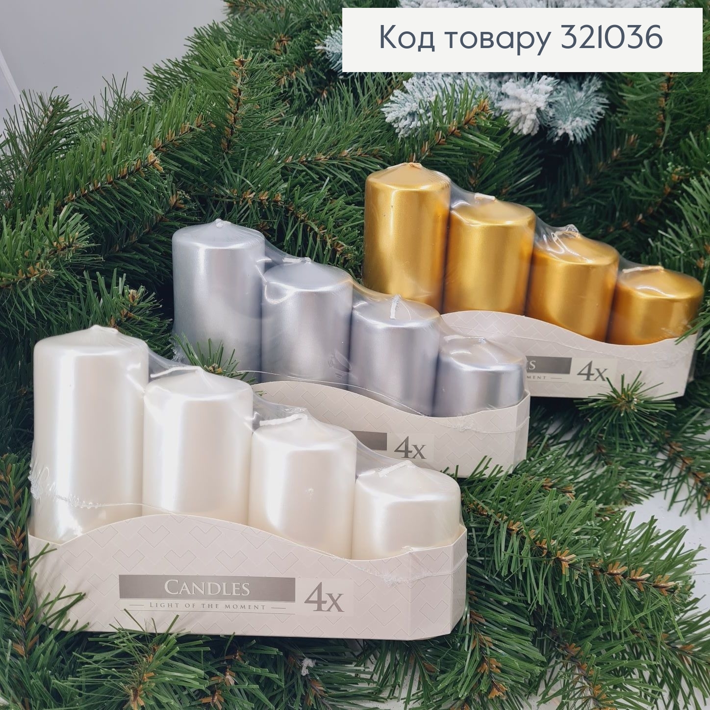 Набор свечей цилиндр ПЕРЛАМУТРОВЫХ, BISPOL(ростовка) 4 шт (33, 22, 16, 11 часов)