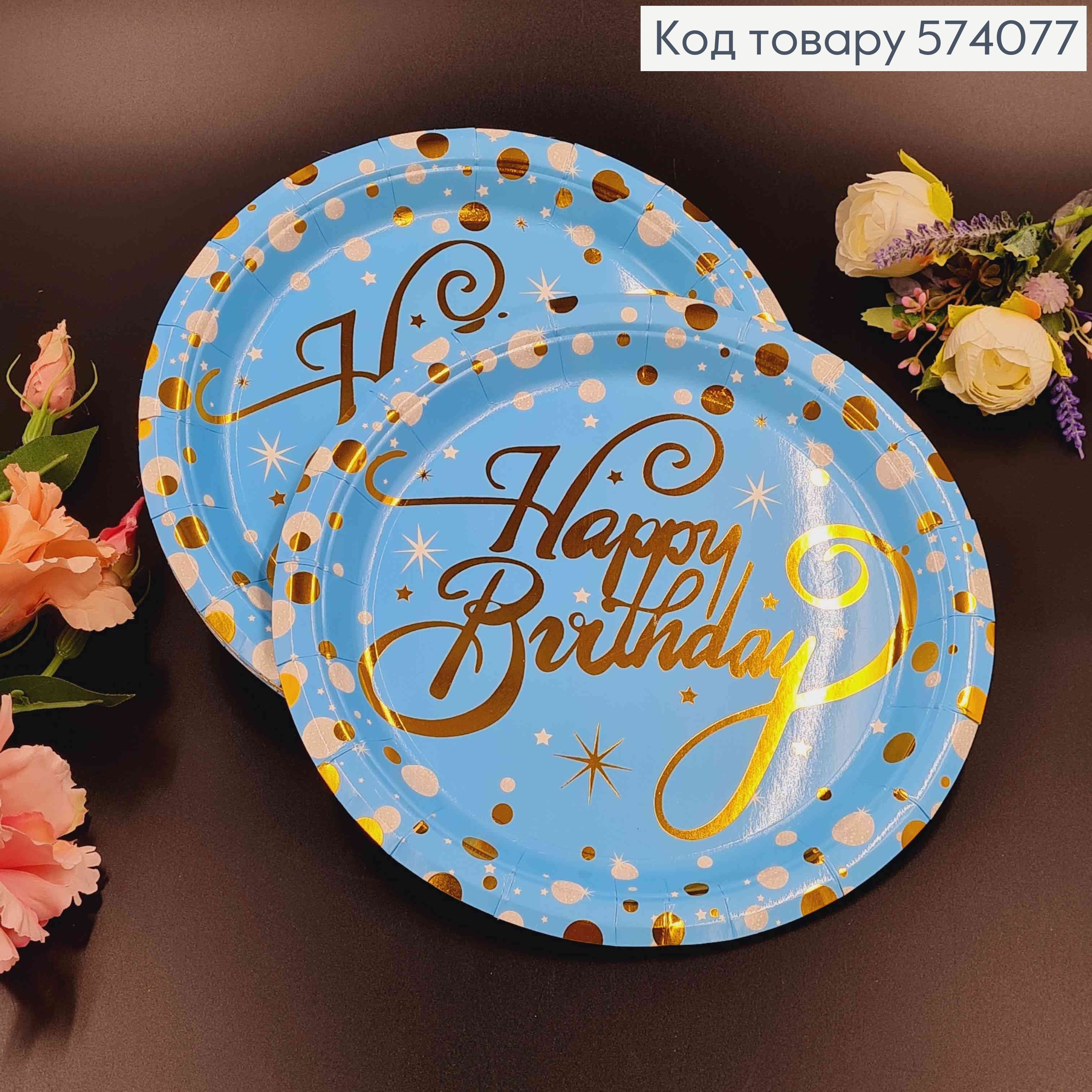 Набор тарелок бумажных с надписью "Happy Birthday" Золотом на Белом фоне, 10шт/уп, 18см 574139 фото
