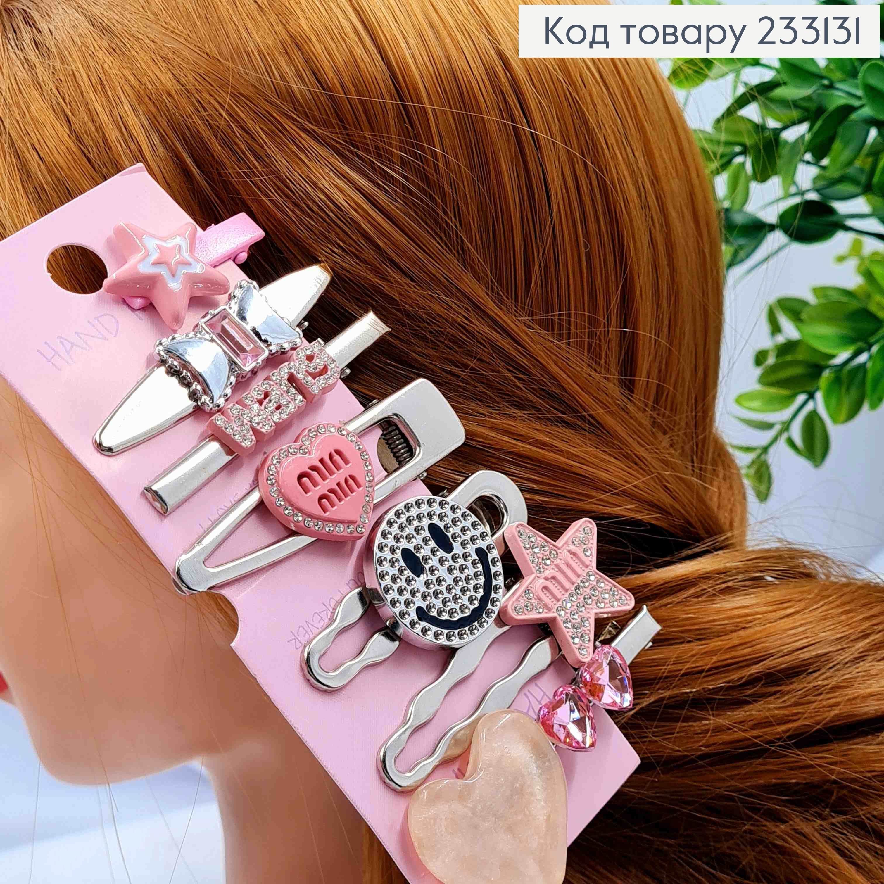 Набор: заколка стрела металл, MIN MIN-Сердце-Звезда с камнями, 3,5-7см, в Ассортименте (7шт/уп)