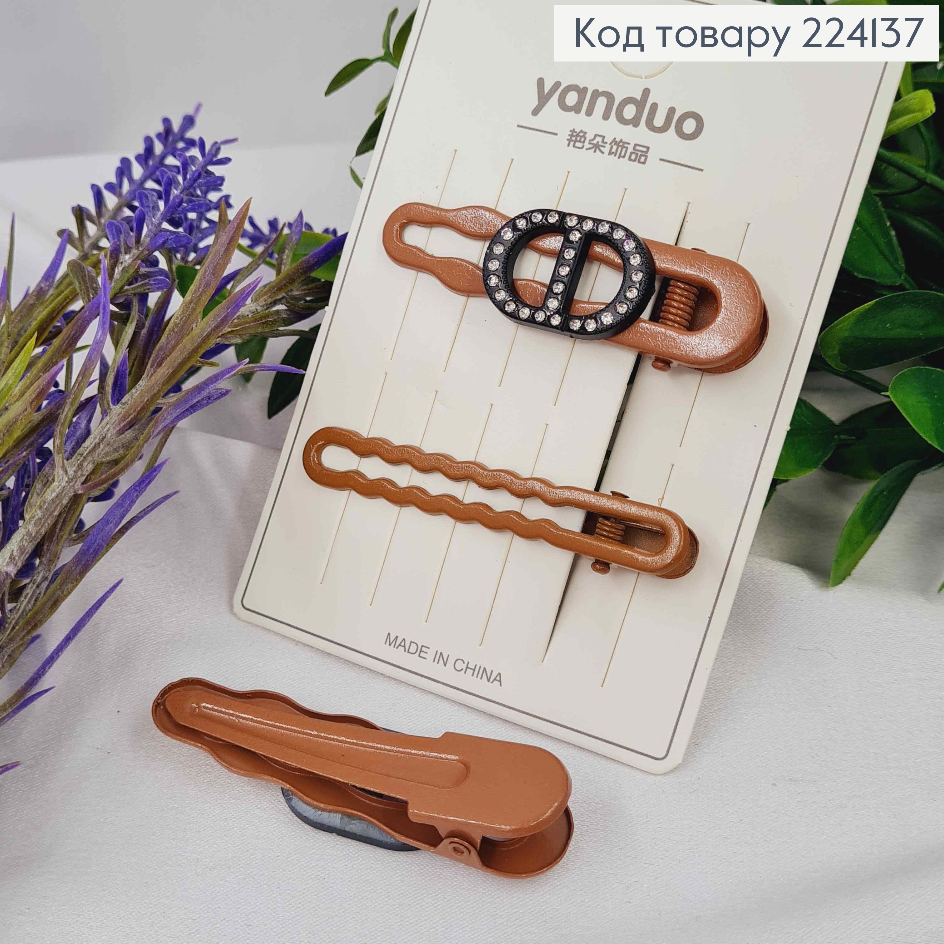 Набор заколок (3шт) СТРЕЛА "ДИОР", 6см, коричневого цвета,