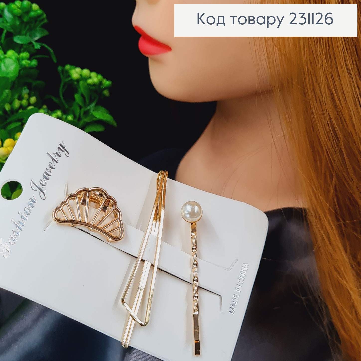 Набор заколок Изысканые Золото с жемчужиной 3шт/уп