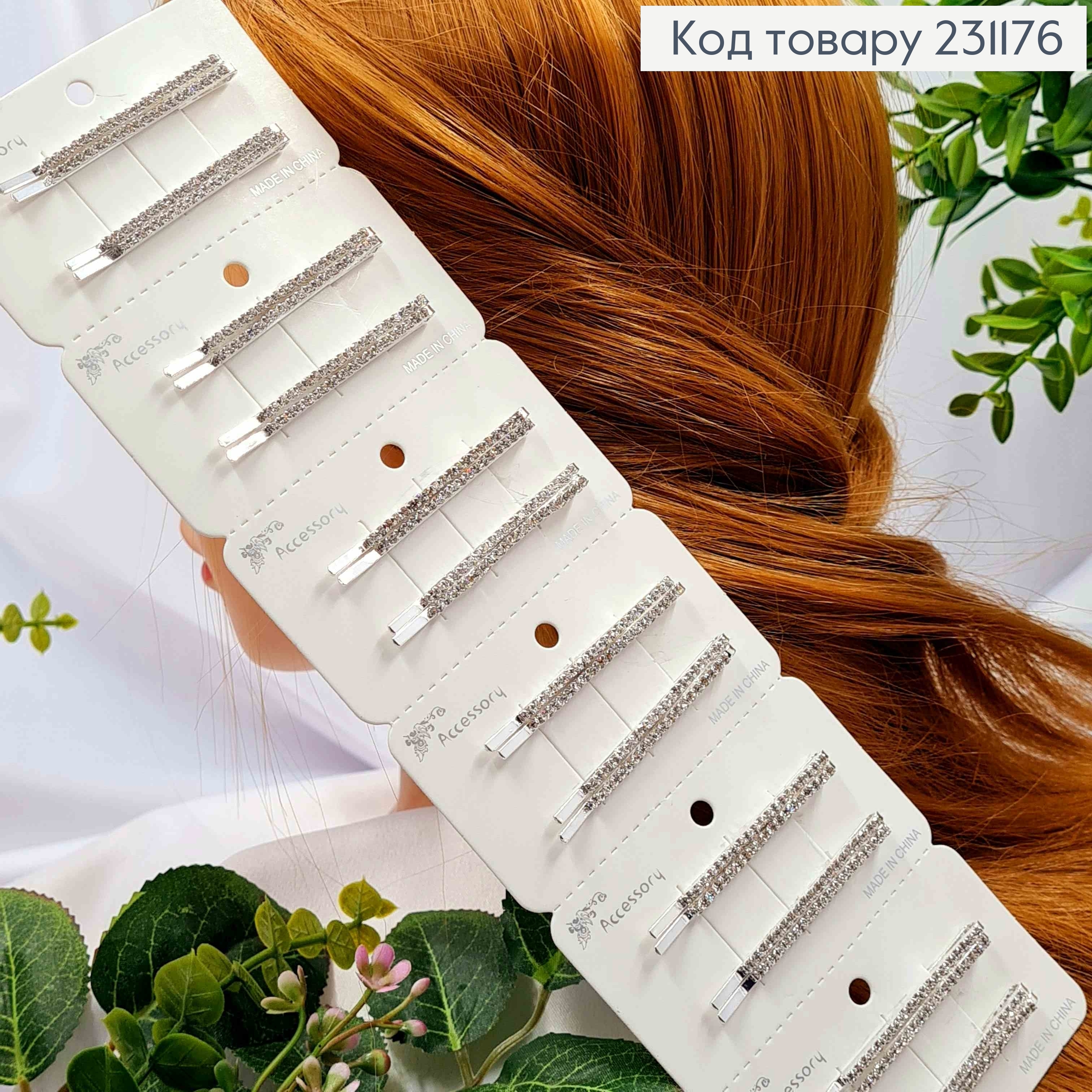 Набор невидимок (2шт), с Блестящими камешками в один ряд, 5,5см, Серебряного цвета, цена за2шт