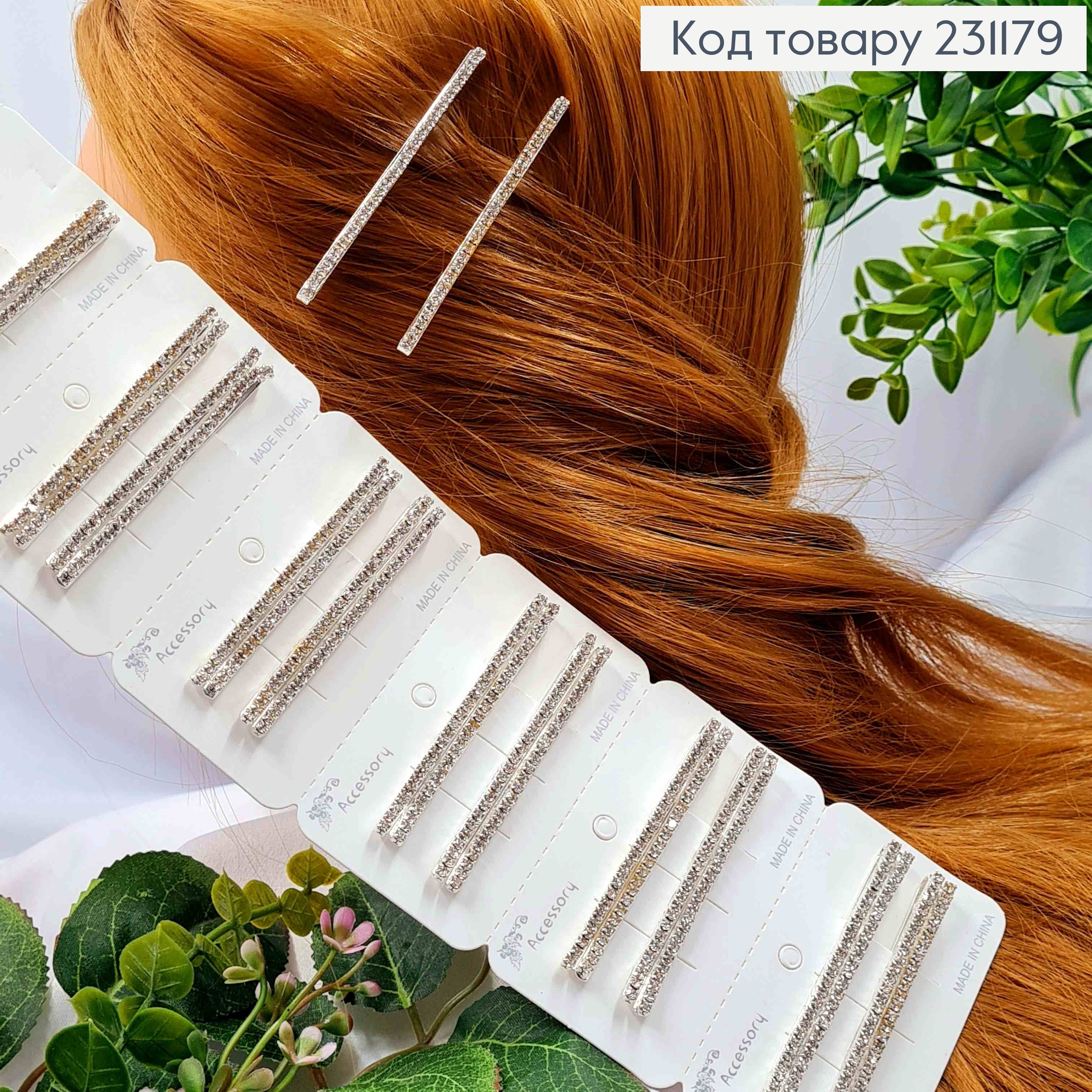 Набор невидимок (2шт), с блестящими камешками в один ряд, 6,5см, Сребряного цвета, цена за 2шт.