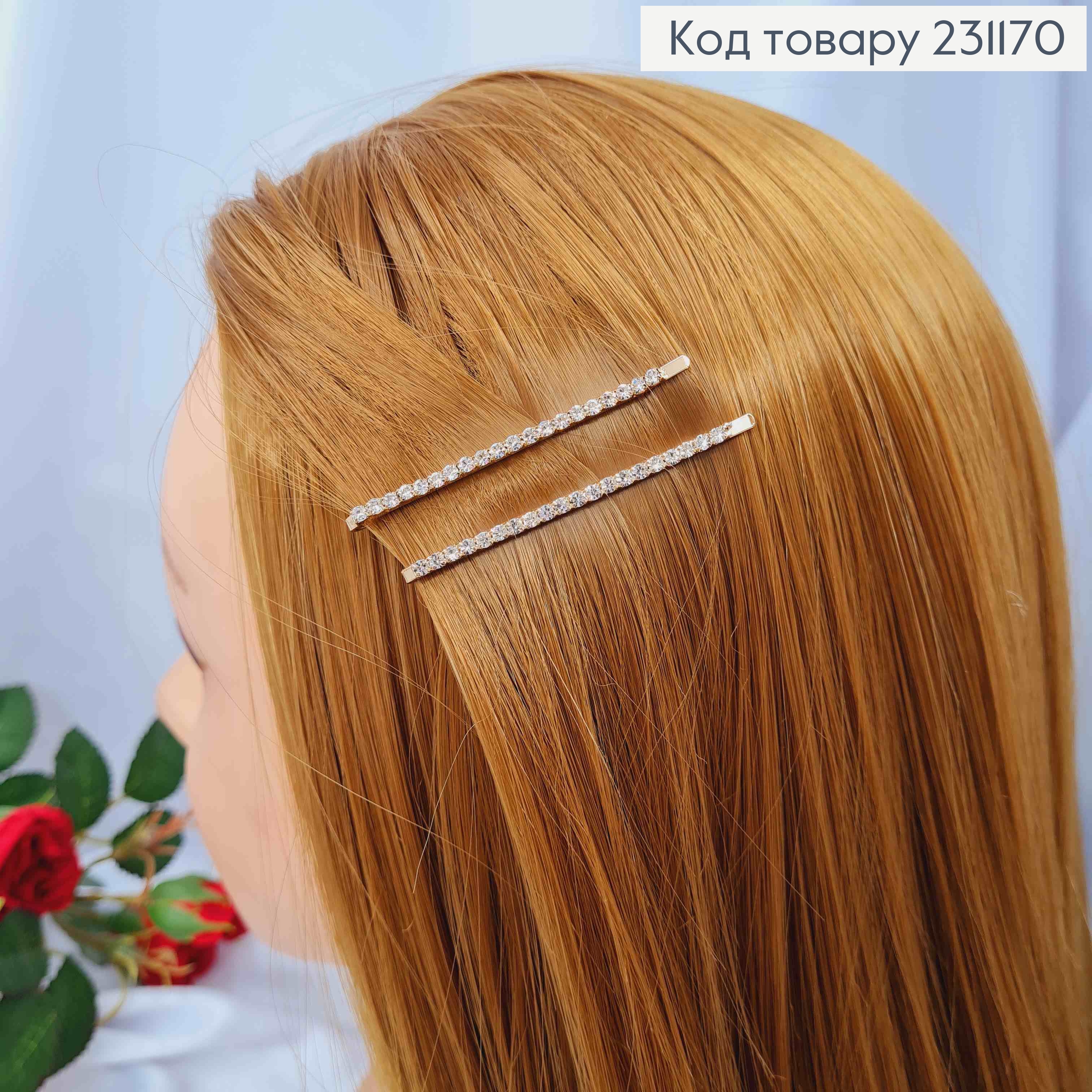 Набор невидимок (2шт), с квадратным блестящим камнем, 5см, серебряного цвета 231196 фото
