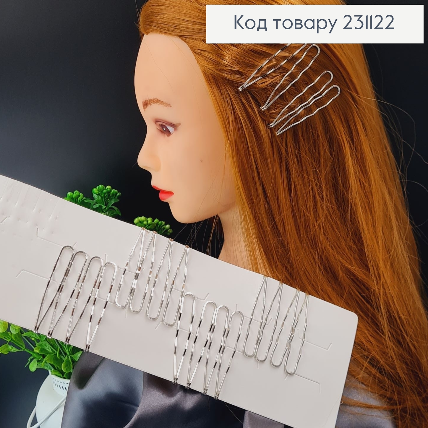 Набор невидимок (12шт), "Мини Цветочки" с Блестящими камешками, 5см, Серебряного цвета 231185 фото