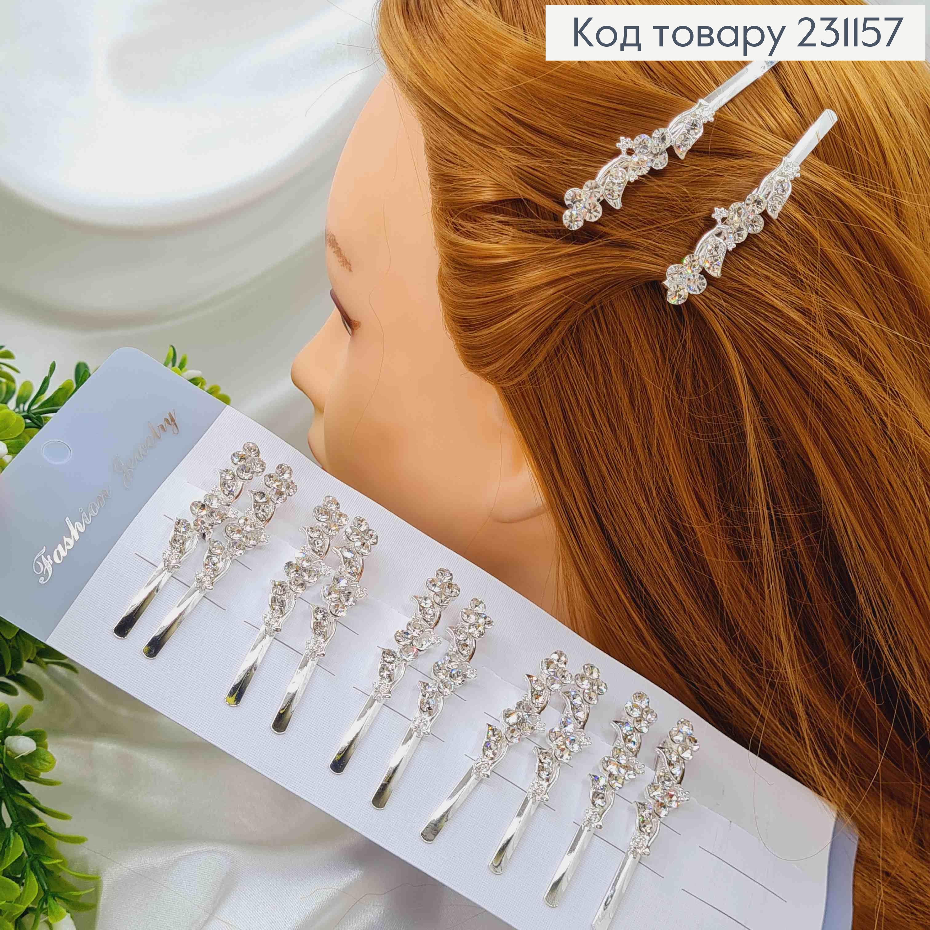 Набор невидимок (12шт), "Цветок с Бабочкой" с Блестящими камешками, 5см, Серебряного цвета 231187 фото
