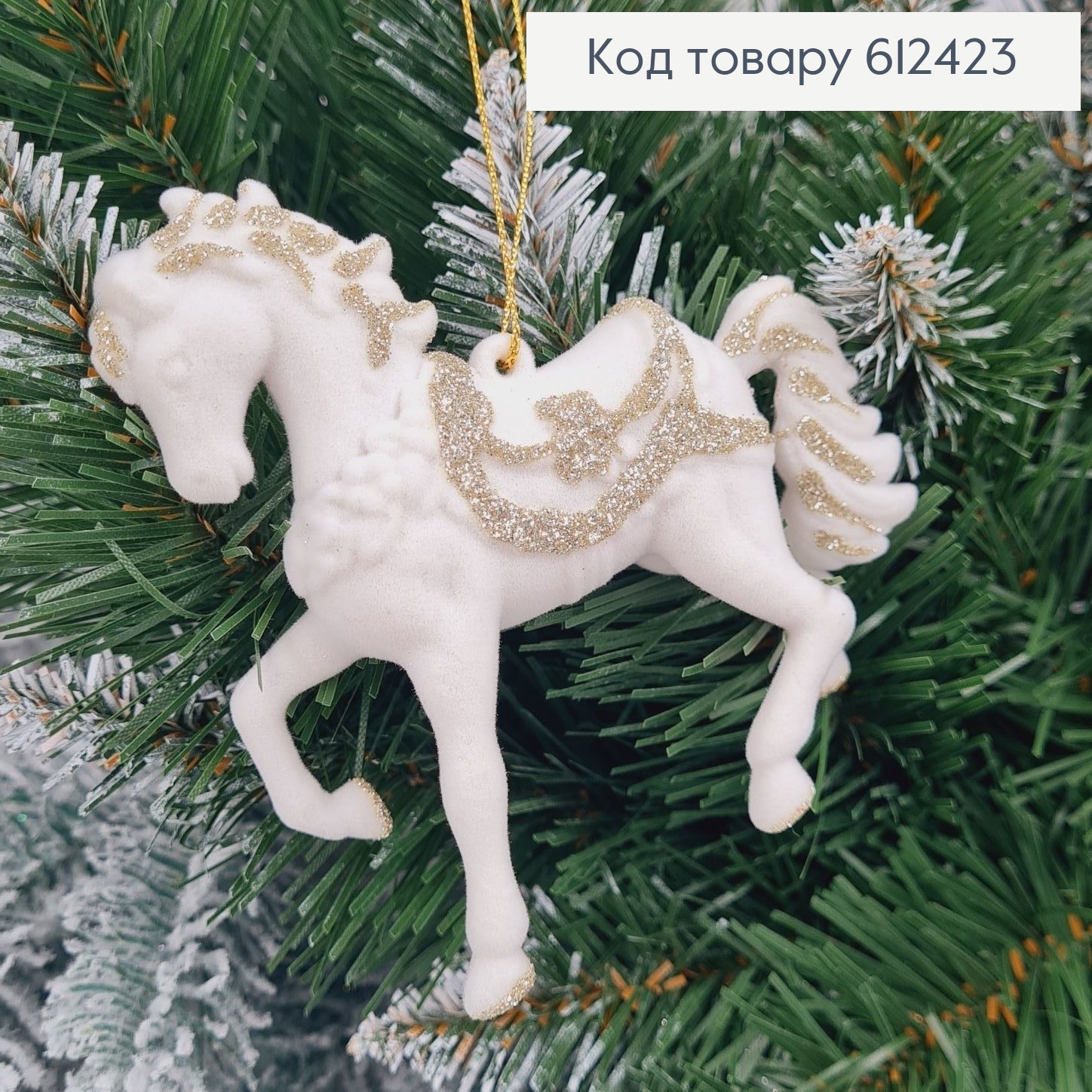 Новогодняя фигура Бархат Конь БЕЛЫЙ+ШАМПАНЬ, 11*10см, Украина