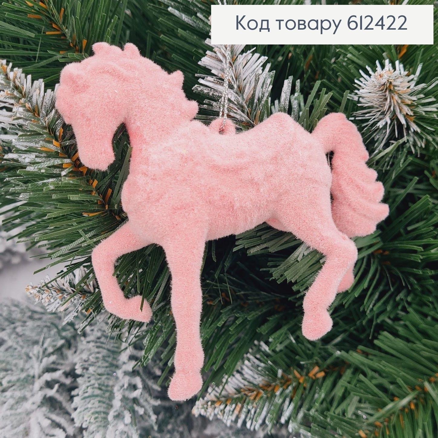 Новогодняя фигура Бархат Конь РОЗОВЫЙ, 11*10см, Украина