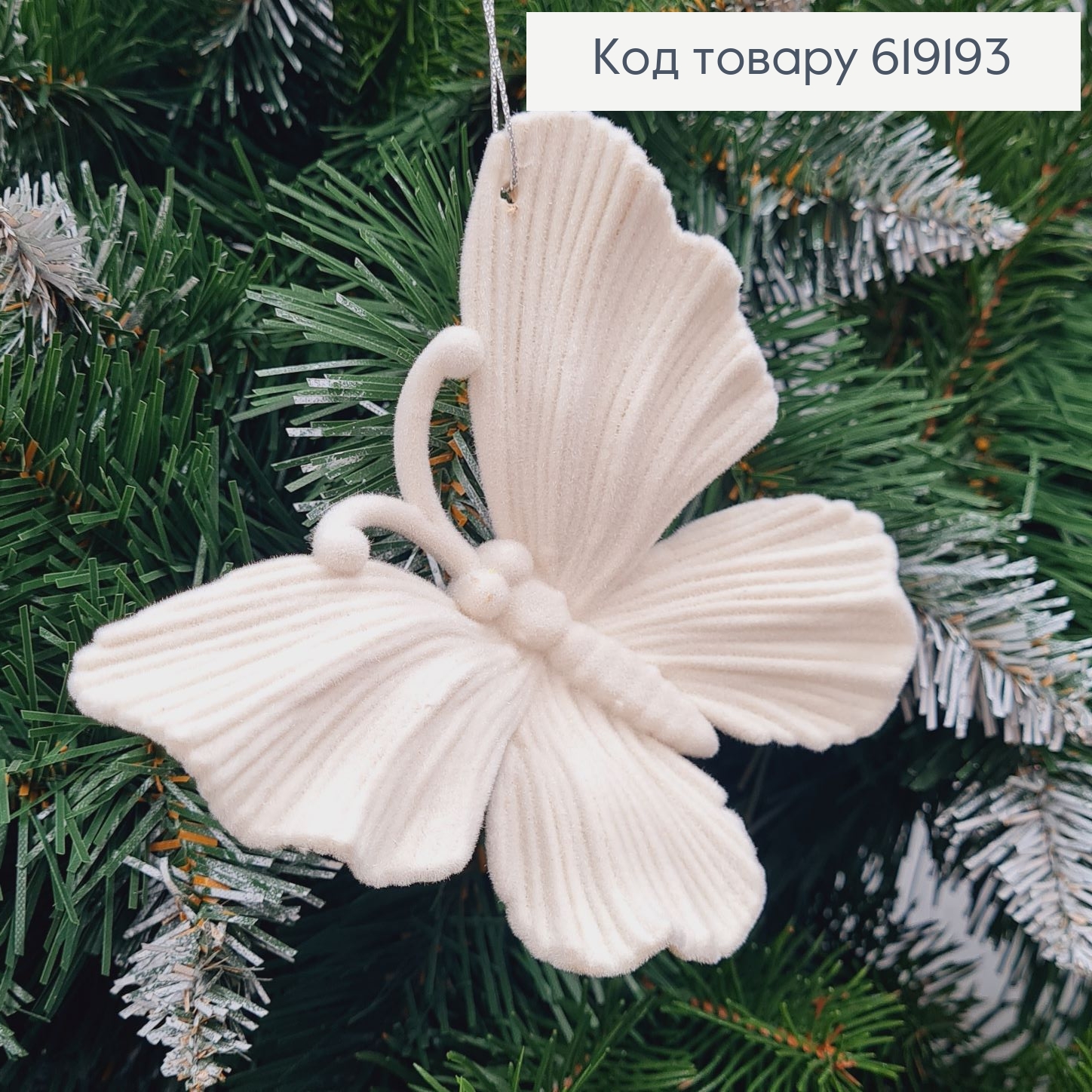 Новогодняя фигура Бархат Бабочка БЕЛАЯ, 11*10см, Украина