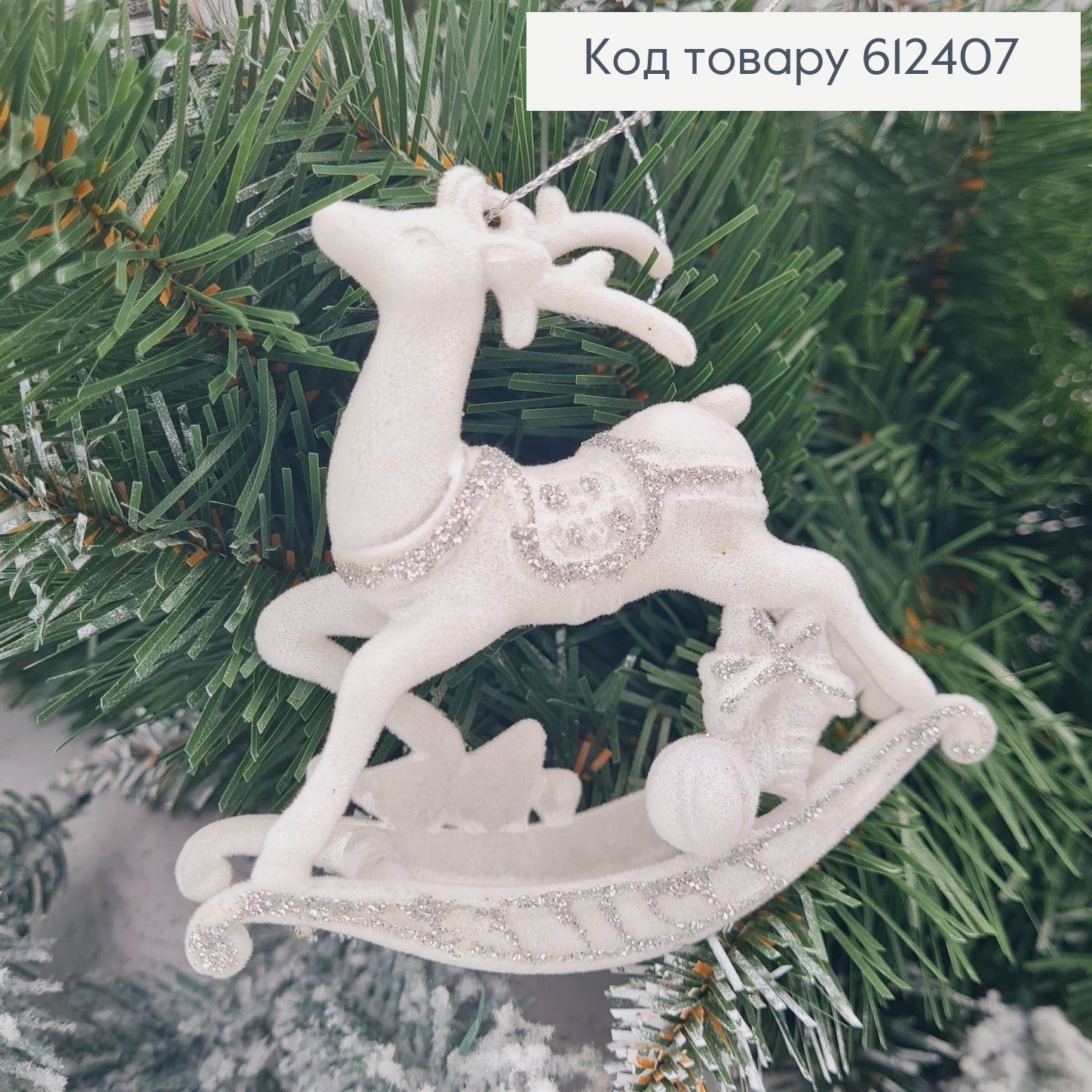 Новогодняя фигура "ОЛЕНЬ", цвет БЛЕСК БЕЛЫЙ, пластик, 15*7см, Украина 619399 фото