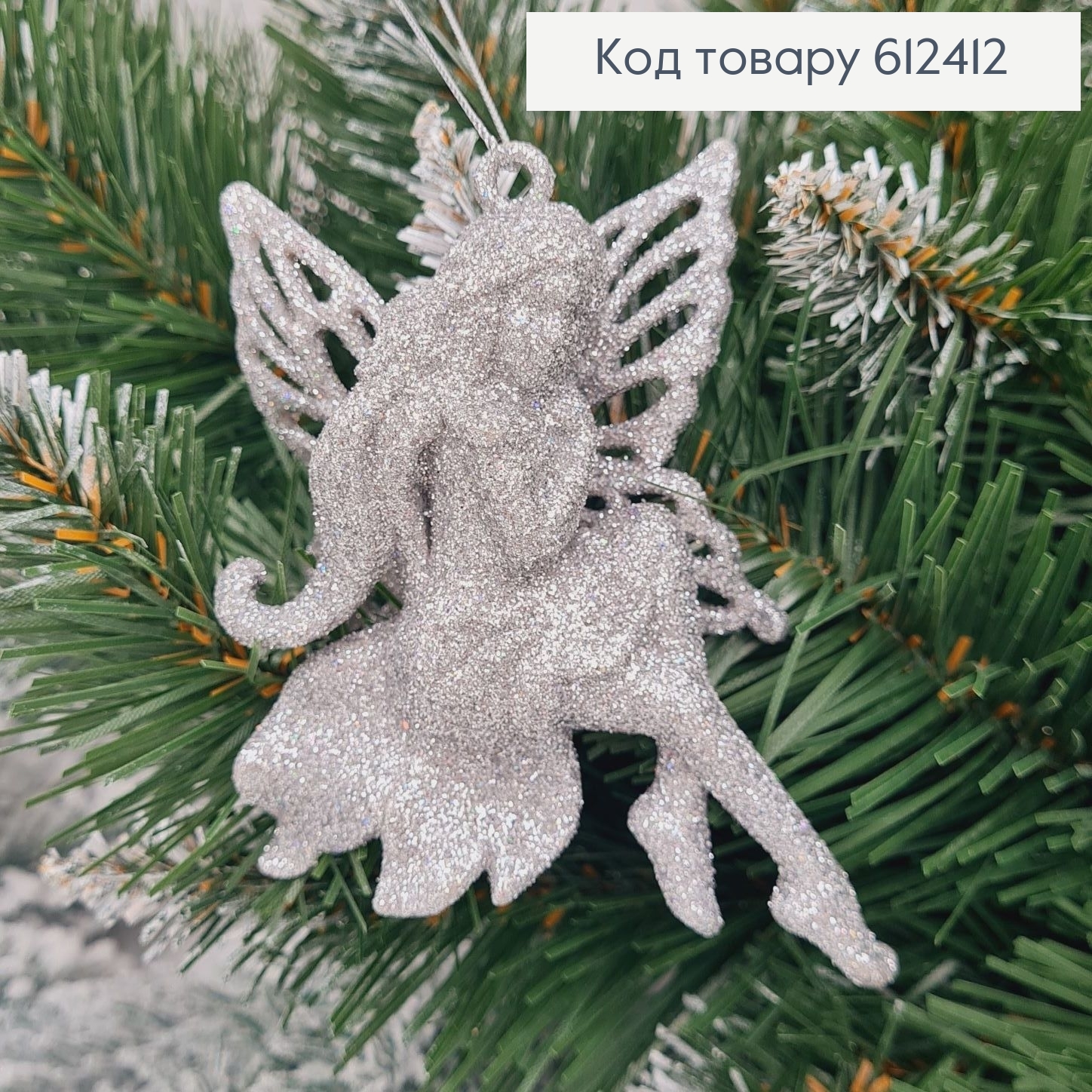 Новогодняя фигура Блеск Фея которая сидит СЕРЕБРЯНАЯ, 10*8,5см, Украина