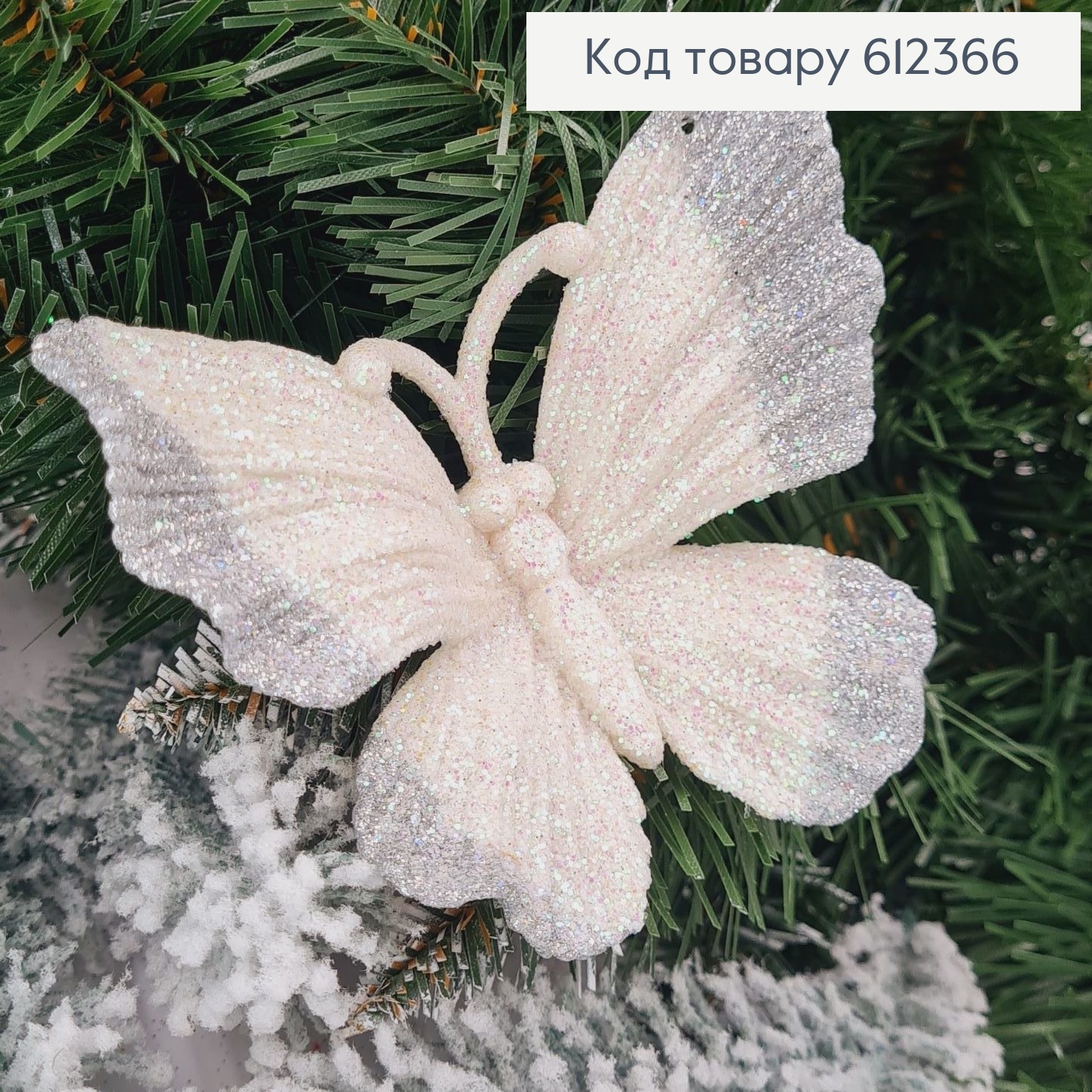 Елочное украшение Бабочка на заколке, Белого цвета+Блеск, 21*17см 620761 фото