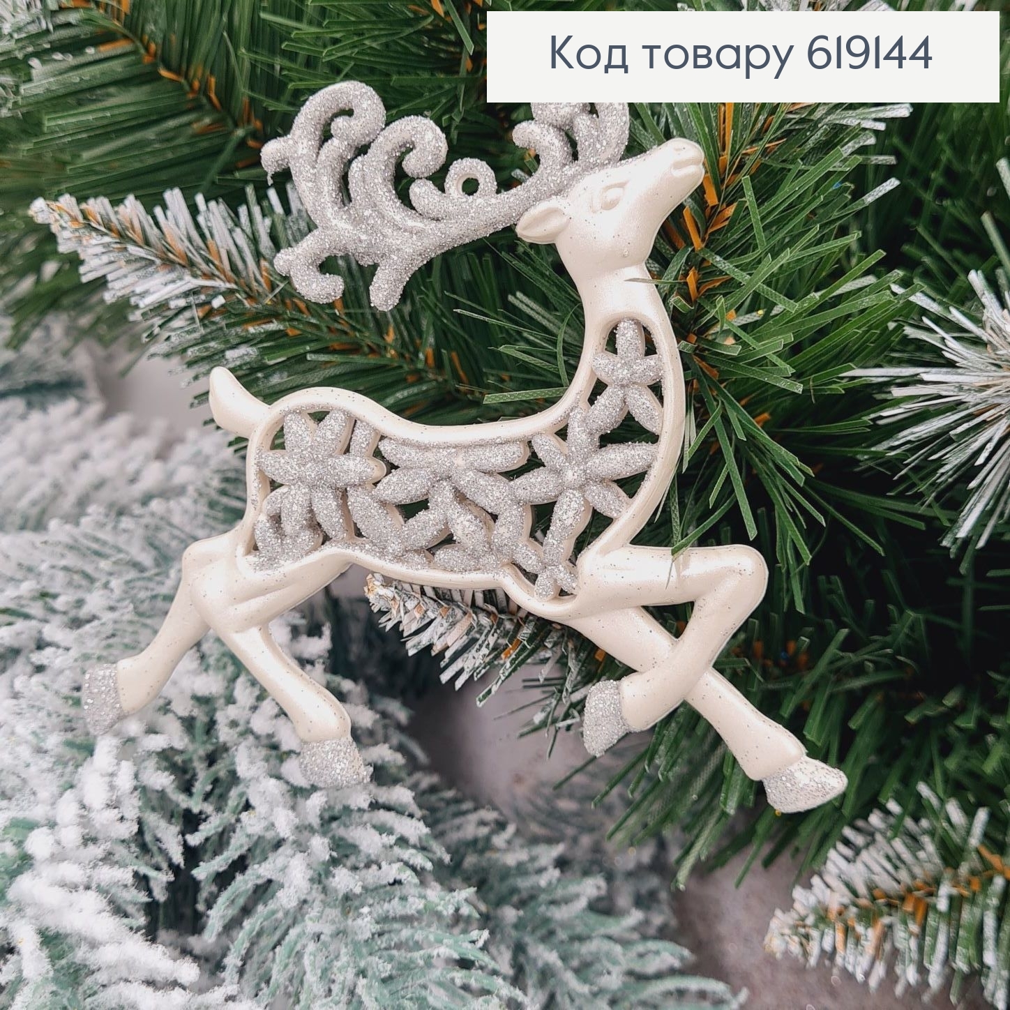 Новогодняя фигура "ОЛЕНЬ", цвет БЛЕСК БЕЛЫЙ, пластик, 15*7см, Украина 619399 фото