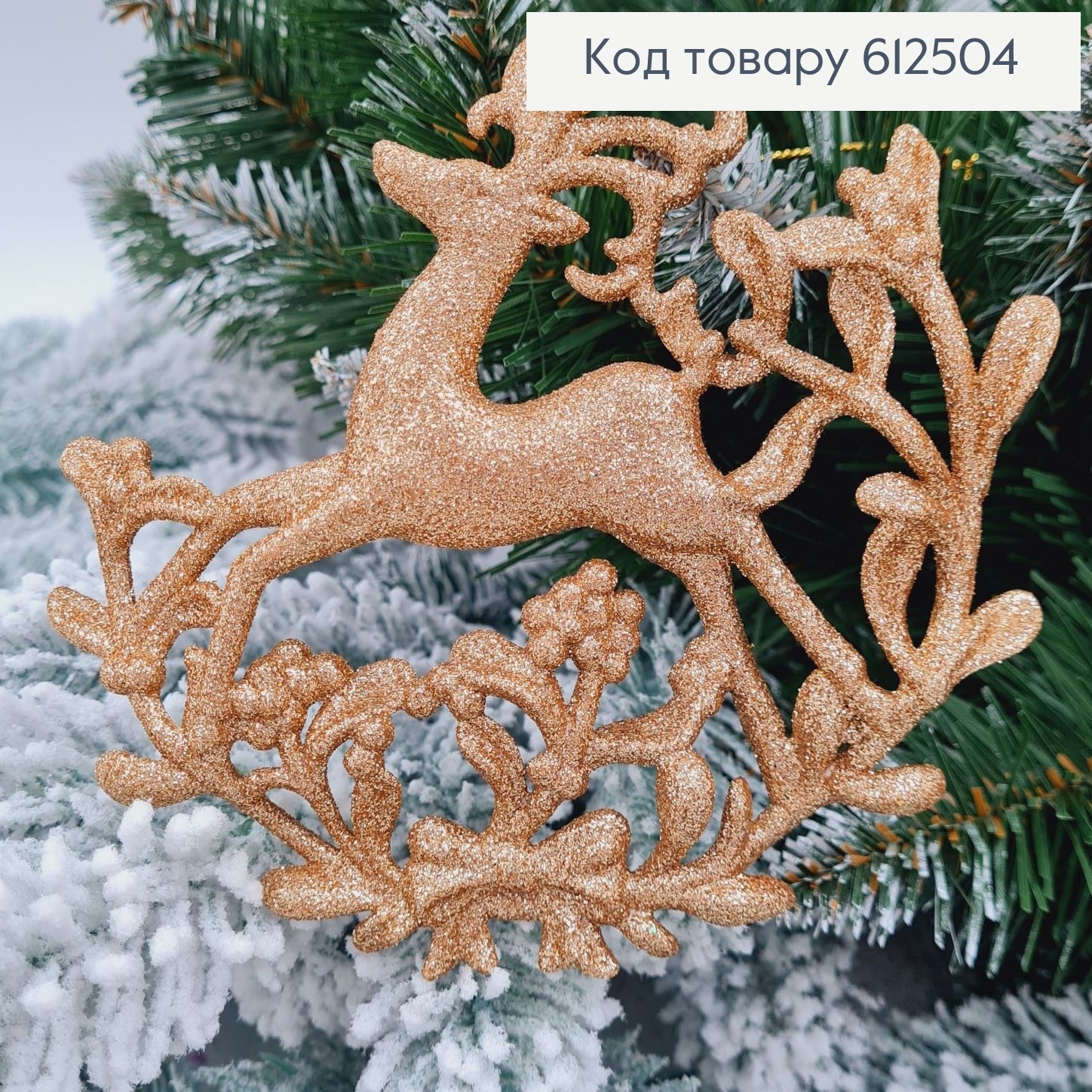 Новогодняя фигура "ОЛЕНЬ", цвет БЛЕСК ШАМПАНЬ, пластик, 15*7см, Украина 619398 фото
