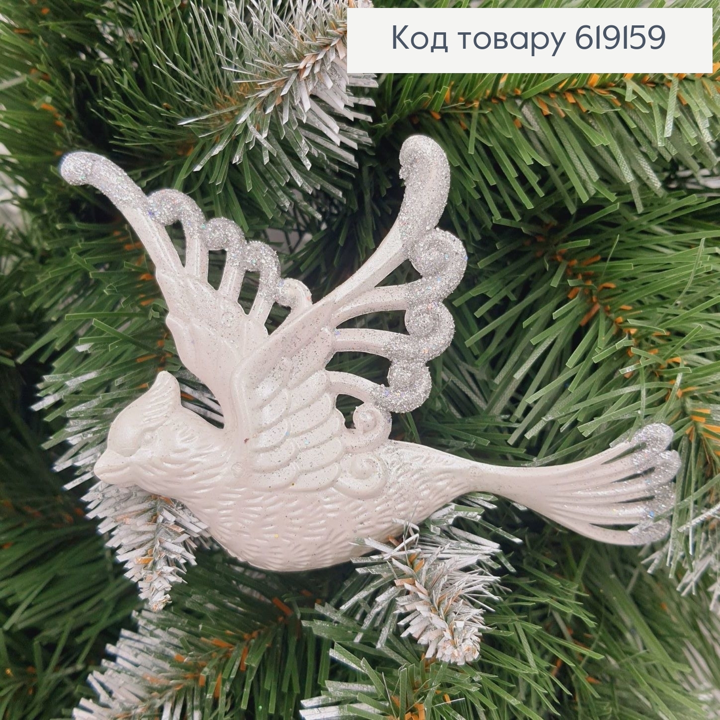 Набор (2шт) : ПТИЦА на заколке, БЕЛОГО цвета+Блеск, 15см, новогодний декор 620758 фото