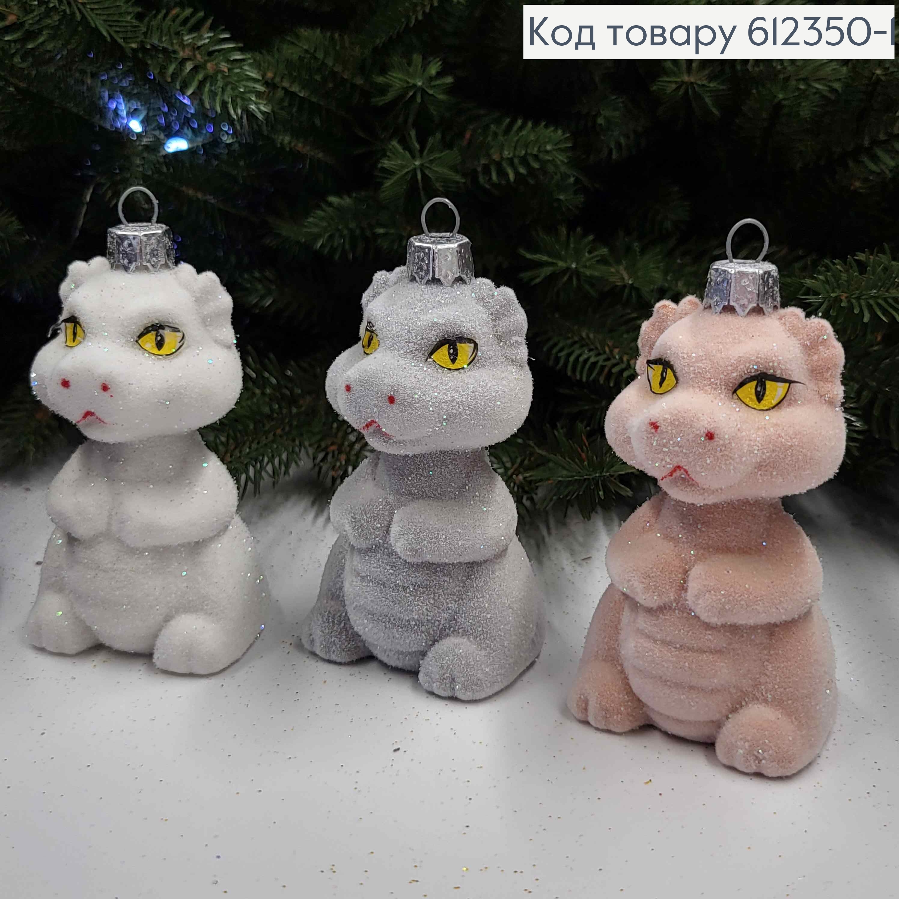 Новогодняя фигура ДРАКОН Бархат, блеск, (символ года 2024) в ассортименте, размер 8,5*4,5см, Украина