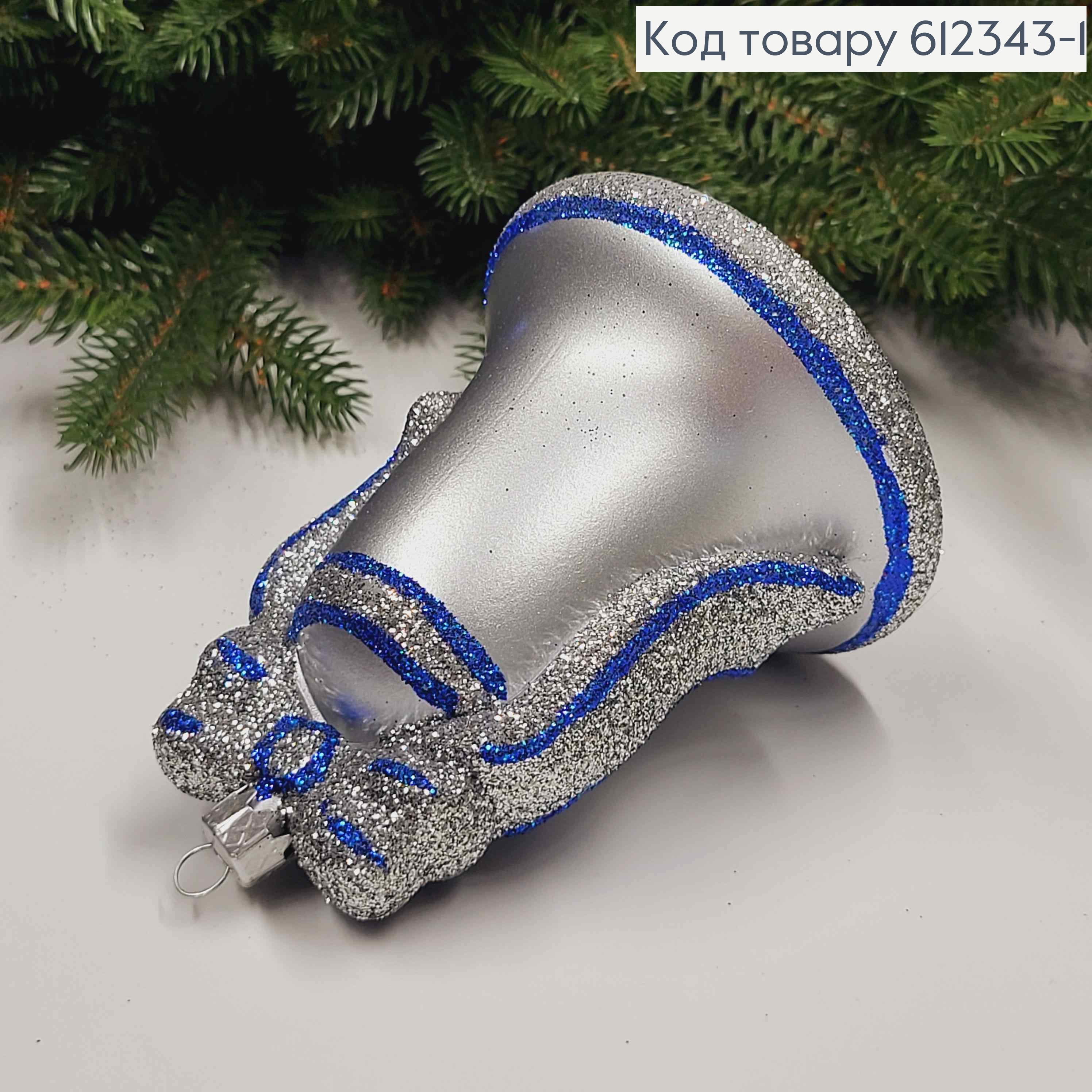 Новогодняя фигура КОЛОКОЛЬЧИК, СЕРЕБРО+синий ободок, размер 11*9см, Украина