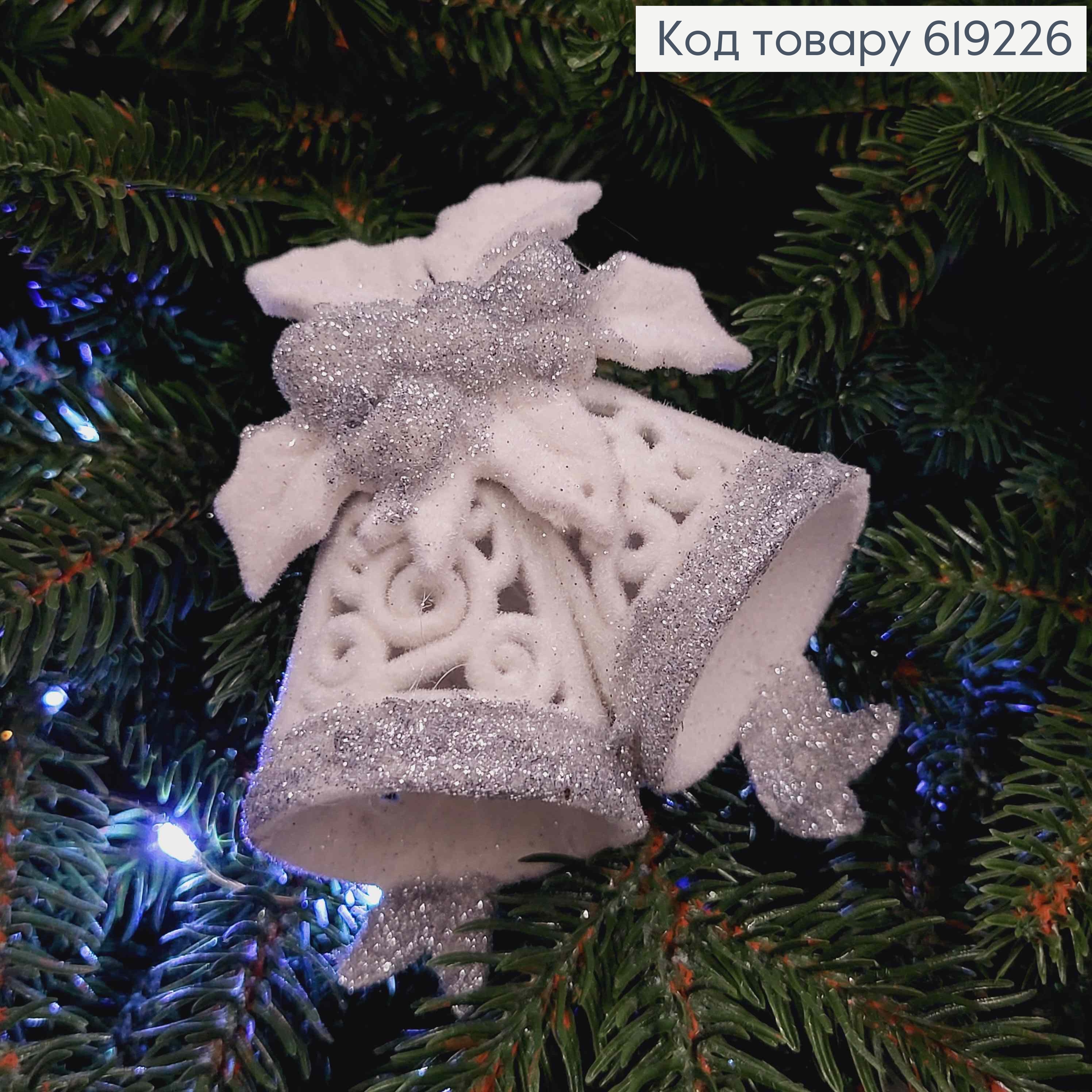 Новогодняя фигура Колокольчики, бархат, цвет БЕЛЫЙ+СЕРЕБРО 8*9см, Украина