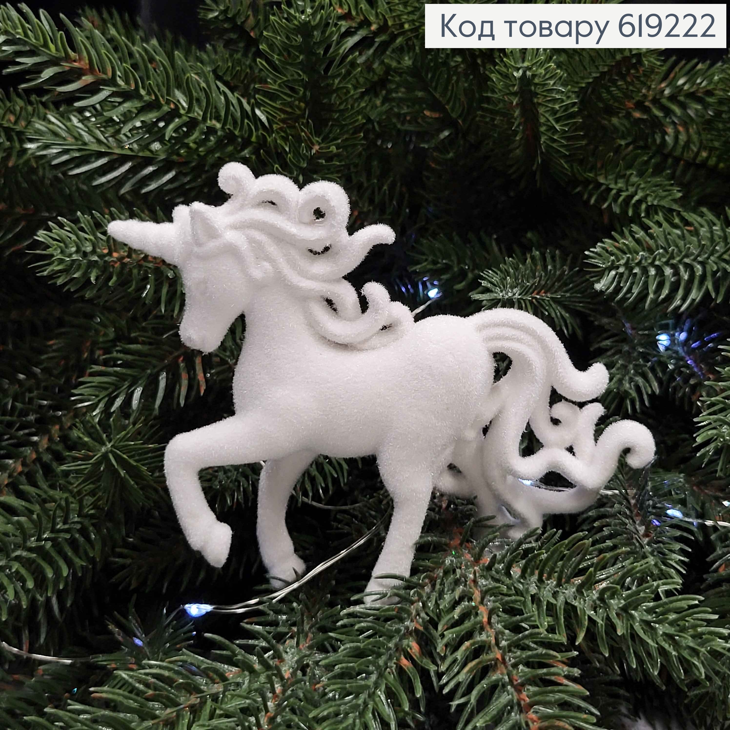 Новогодняя фигура ЕДИНОРОГ, бархат, цвет БЕЛЫЙ, 10*11см, Украина