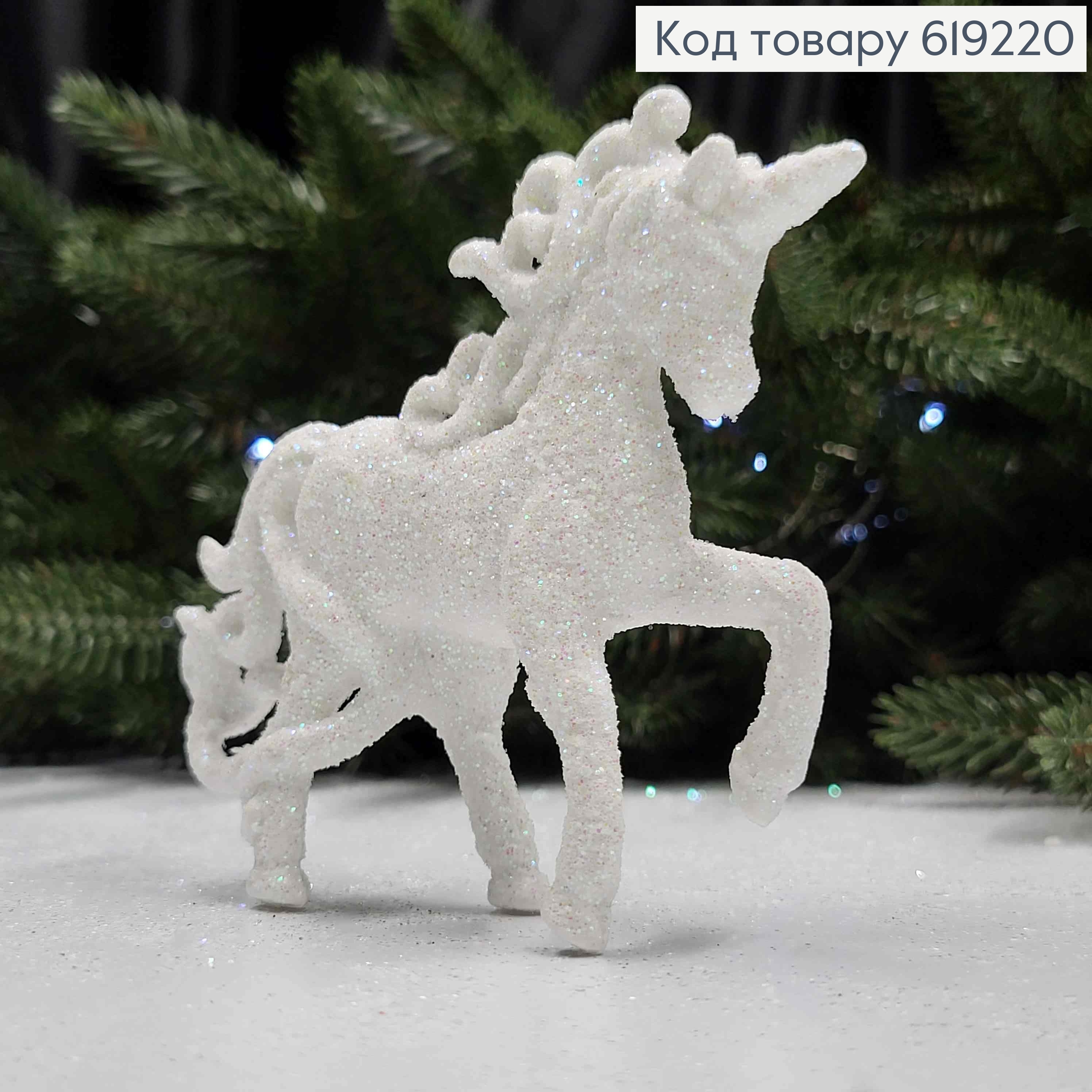 Новогодняя фигура ЕДИНОРОГ, блеск, цвет БЕЛЫЙ, 10*11см, Украина