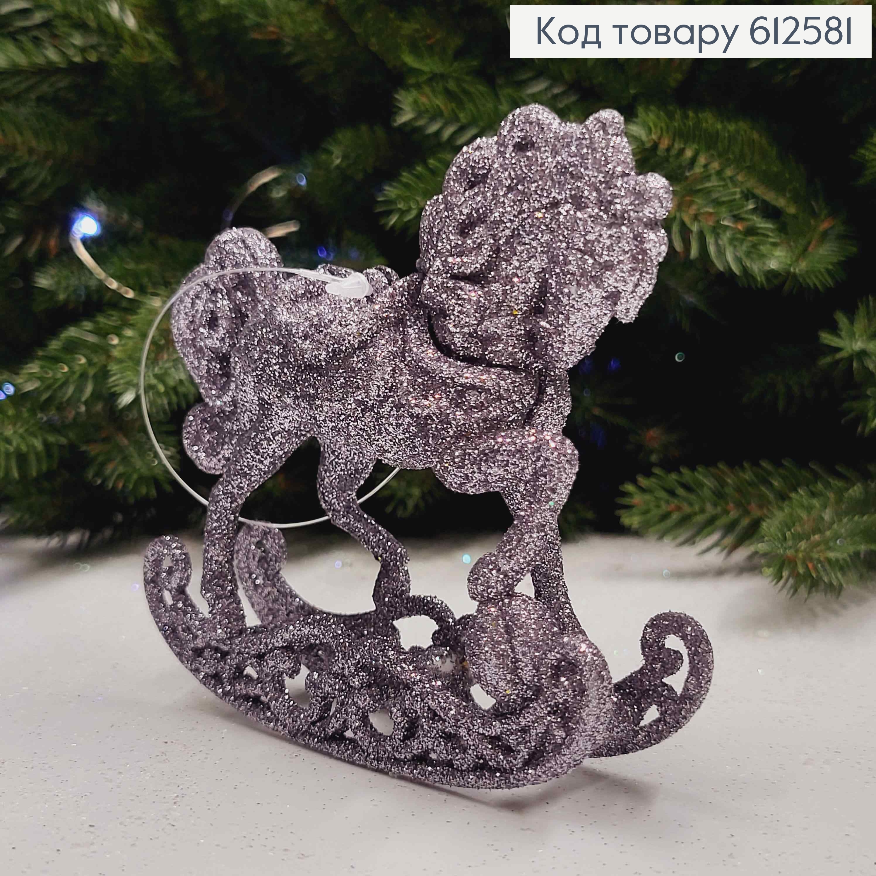 Новогодняя фигура КОНЬ НА САНЯХ, блеск, цвет ГРАФИТ, 10*9см, Украина