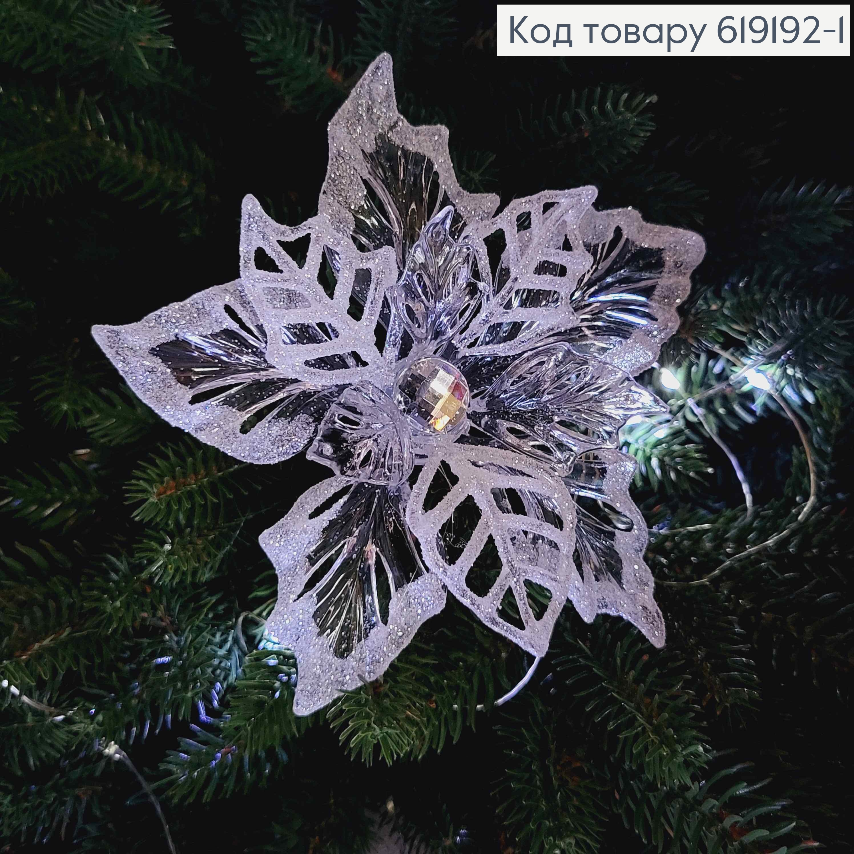 Новогодняя фигура Цветок Рождественский ПРОЗРАЧНЫЙ с ИНЕЕМ, 13,5см, Украина