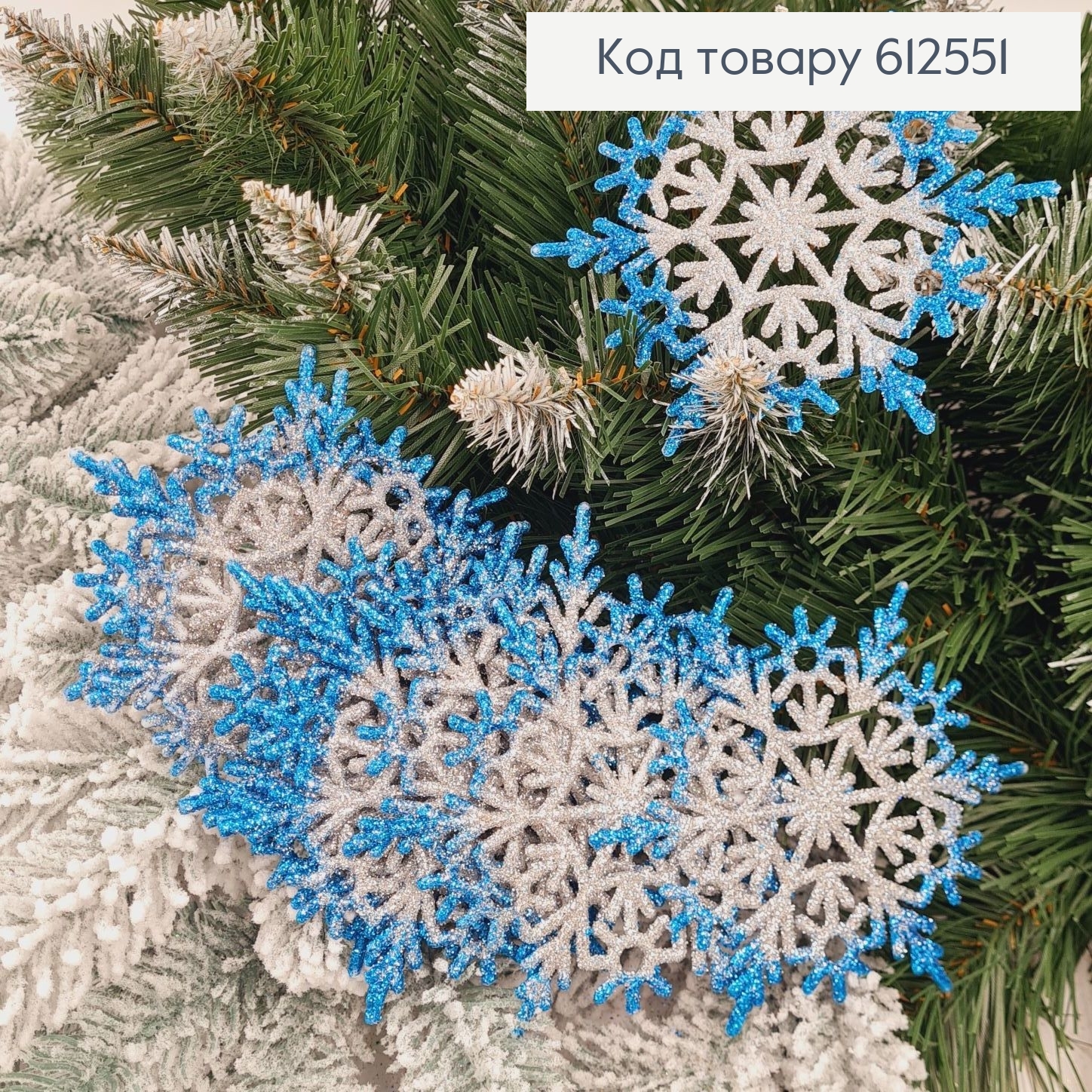 Новогодняя фигура снежинка Блеск ГОЛУБОЙ+Белый 10шт/уп, 12см, Украина 612550-1 фото