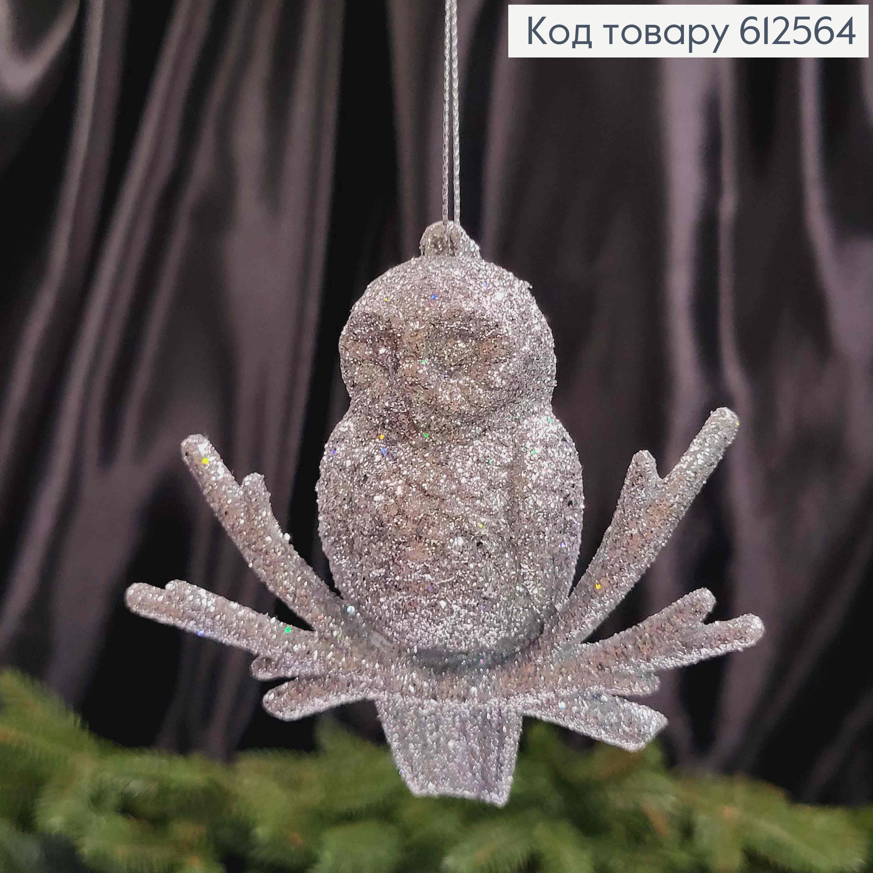 Новогодняя фигура СОВА блеск, цвет СЕРЕБРО, 10*9см, Украина
