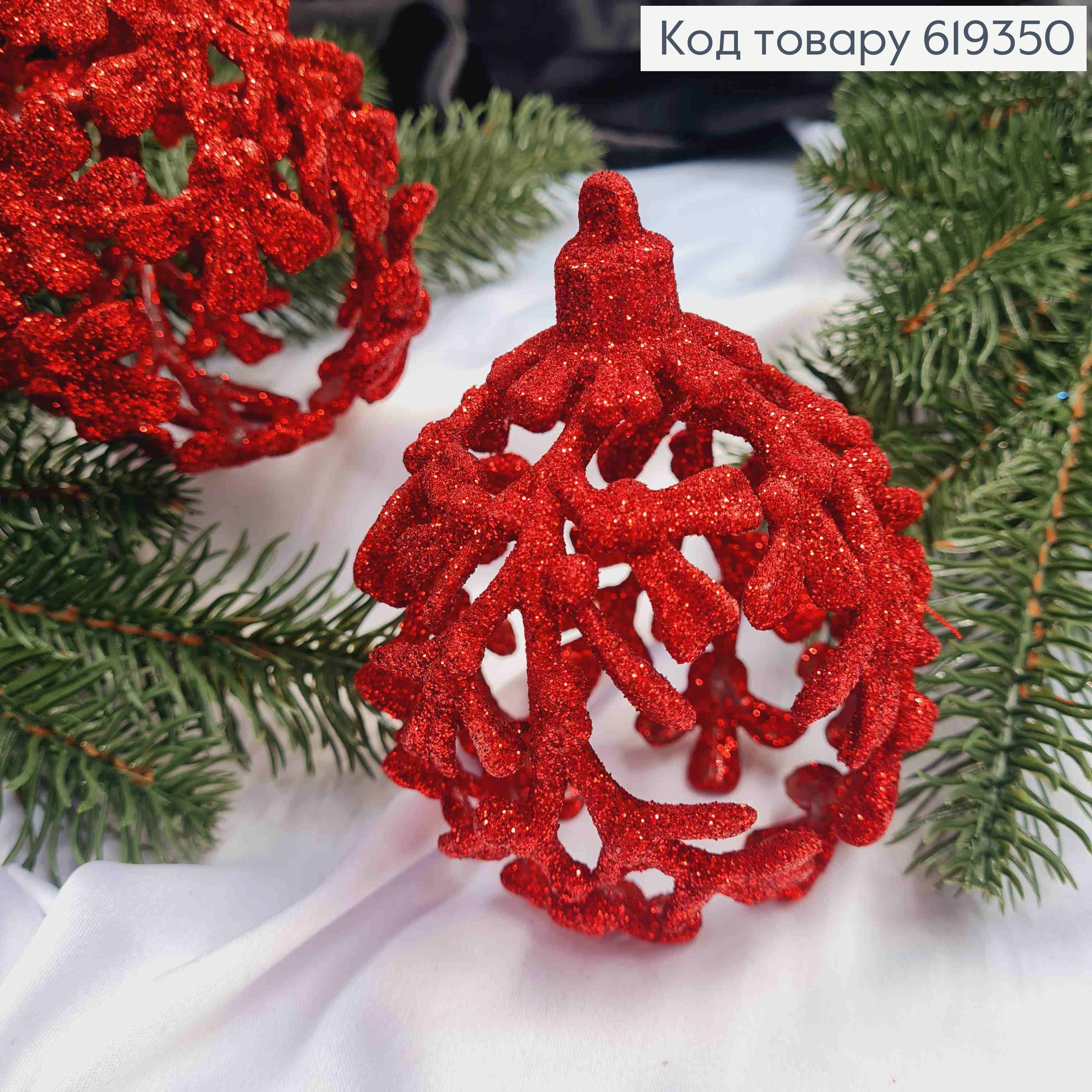 Новогодняя игрушка круглая "Веточка" зкрасного цвета с блеском, пластиковая, диаметр 9см, Украина.