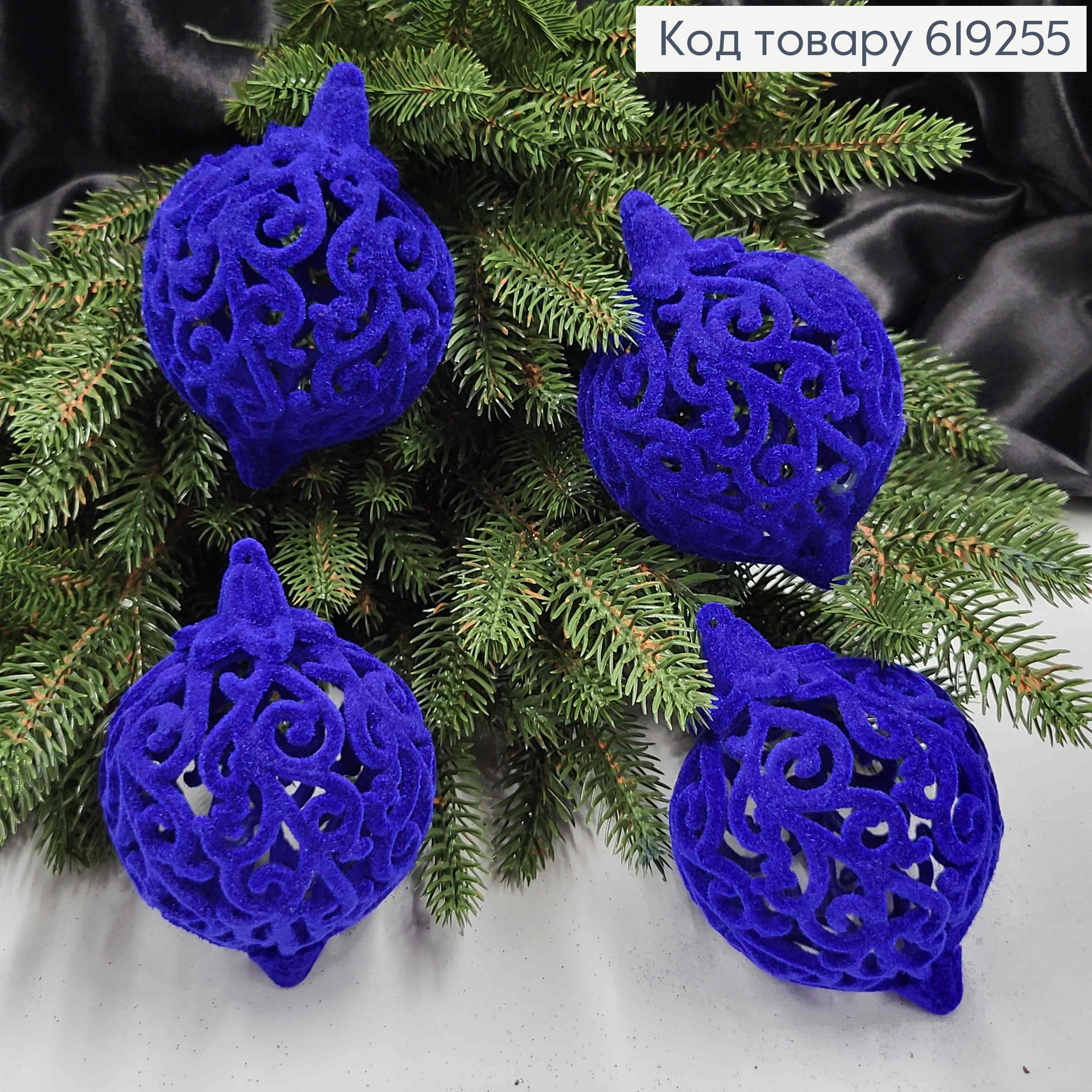 Новогодняя игрушка ВЕНЗЕЛЯ, дутая, бархат, цвет СИНЯЯ, диам.70мм, 4шт/уп, Украина