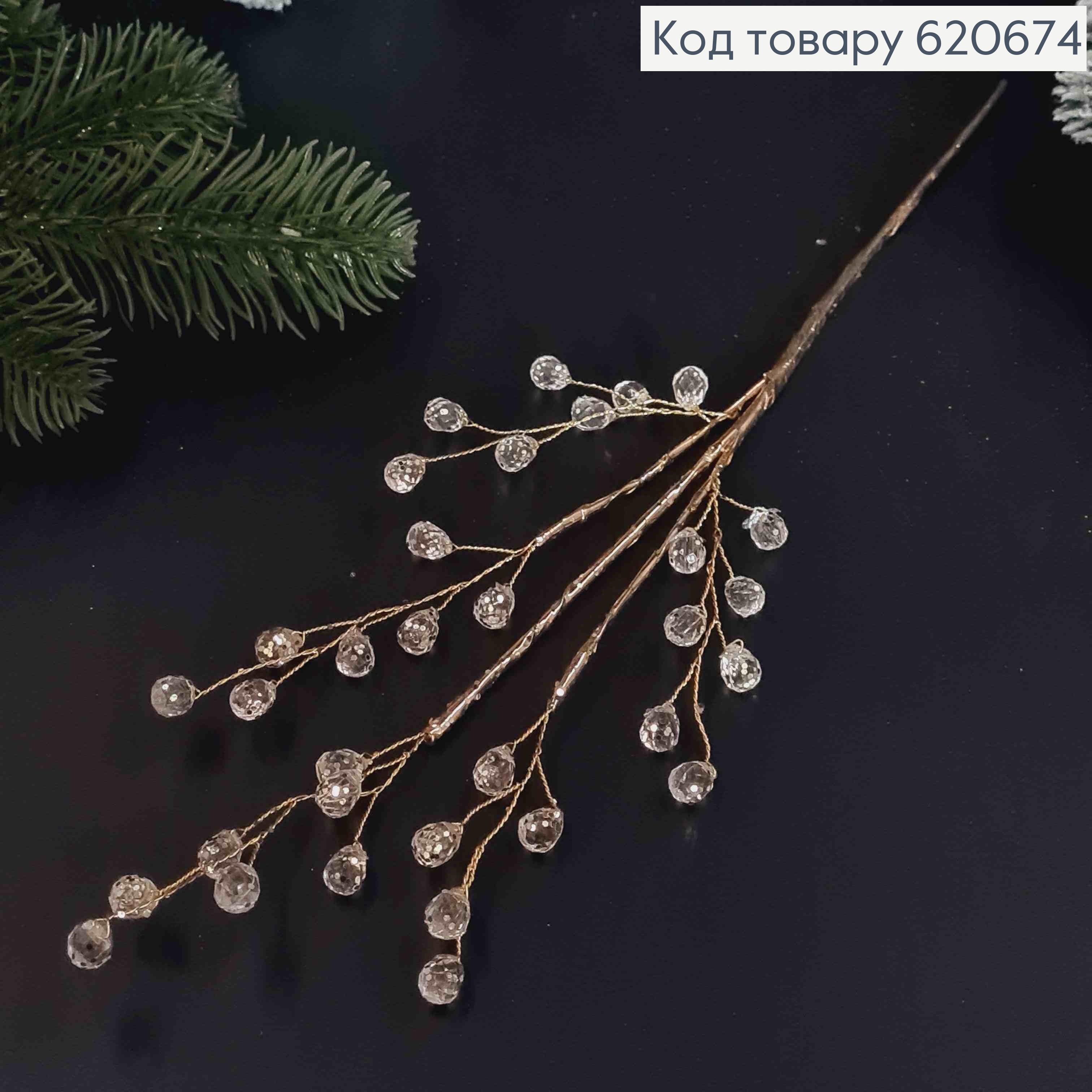Новогодний декор веточка Золотая, с прозрачными камнями, на металл стержни, длина 33см.