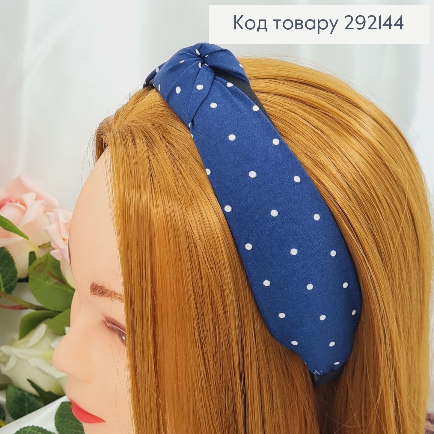 Обруч чалма КРАПОЧКА (темно-синий), ручная работа, Украина