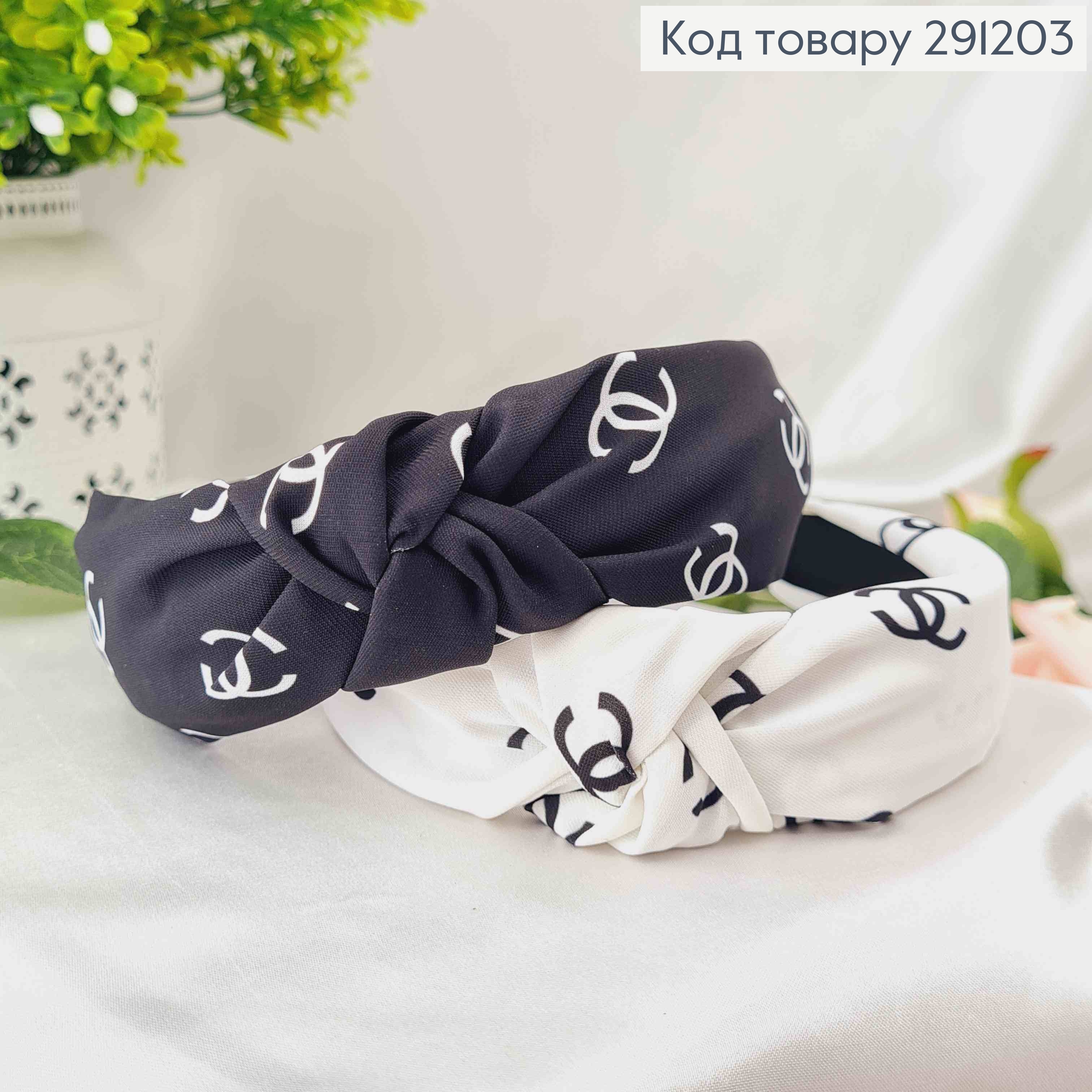 Обруч чалма, С принтом "Шанель" шир.3см, Черный/Белый в ассорт.