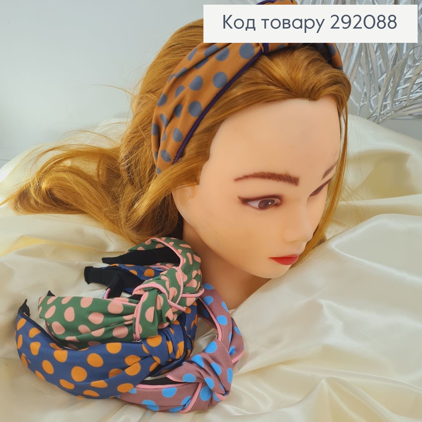 Обруч пластик в ткани "Солоха", в Горошек Мятного цвета, 2,5см, ручная работа, Украина. 292419 фото