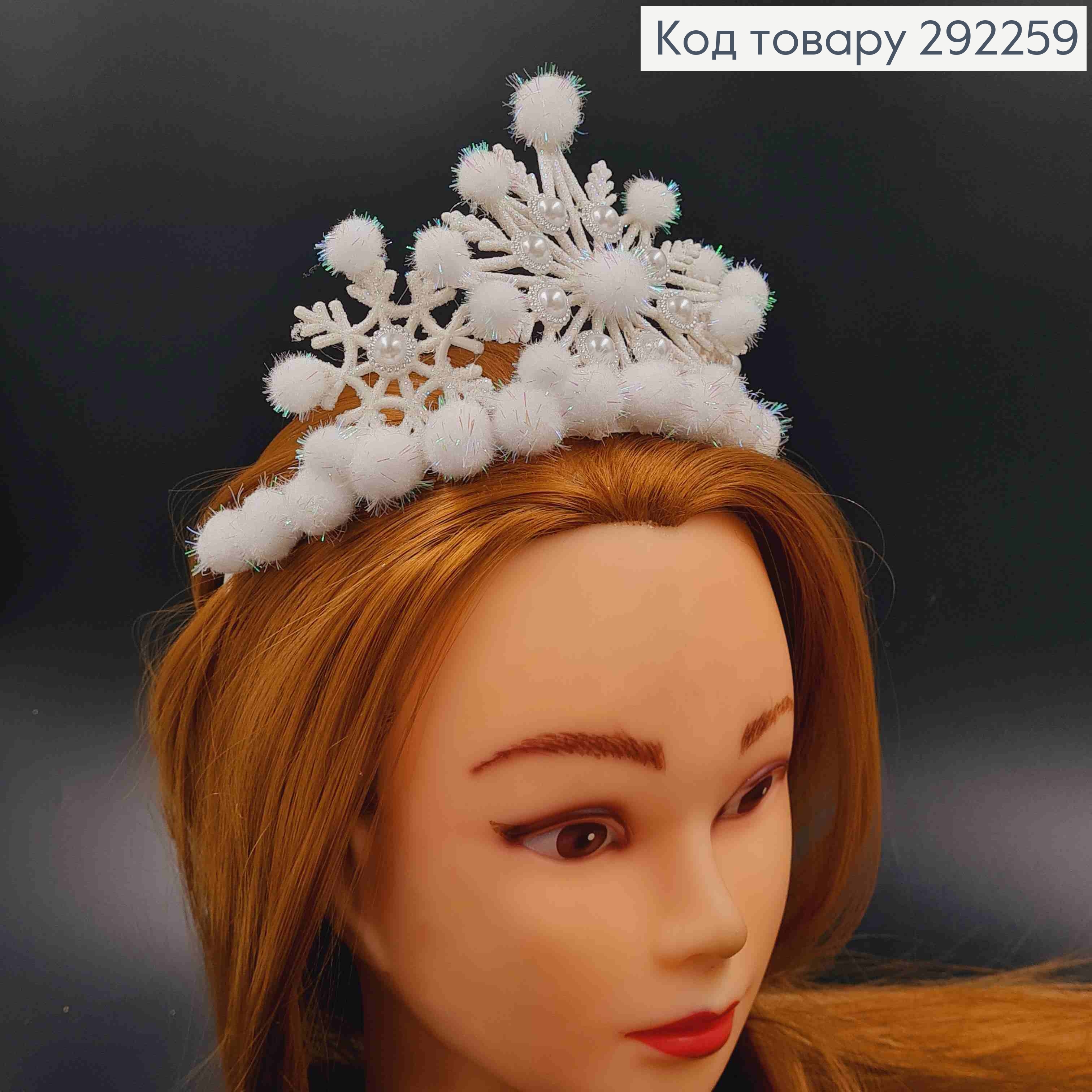 Обруч металл "Три полснежинки" с Помпонами, высокая точка 8 см, ручная работа, Украина 691181 фото