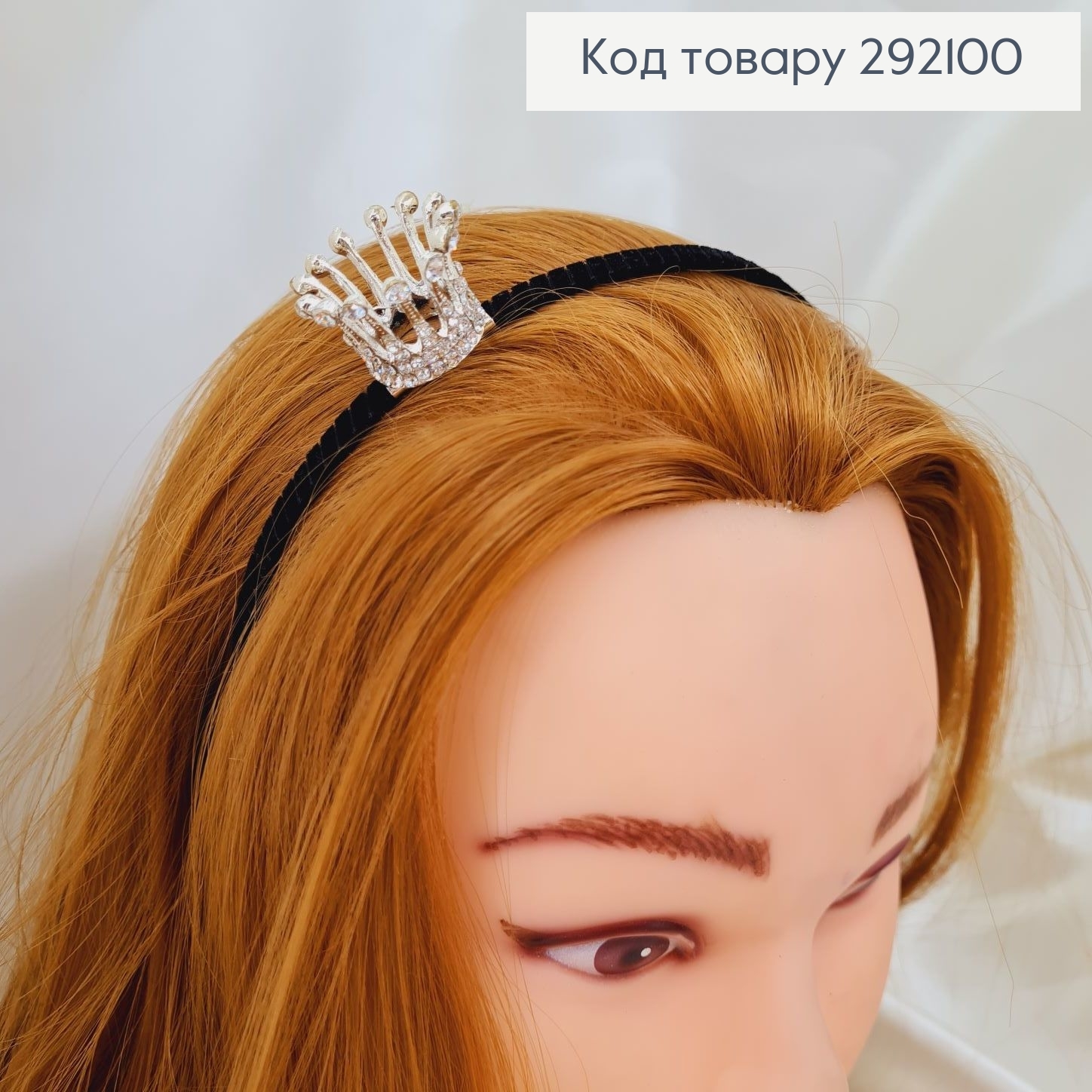 Обруч металл черный Велюр Корона 2,5 см с камнями
