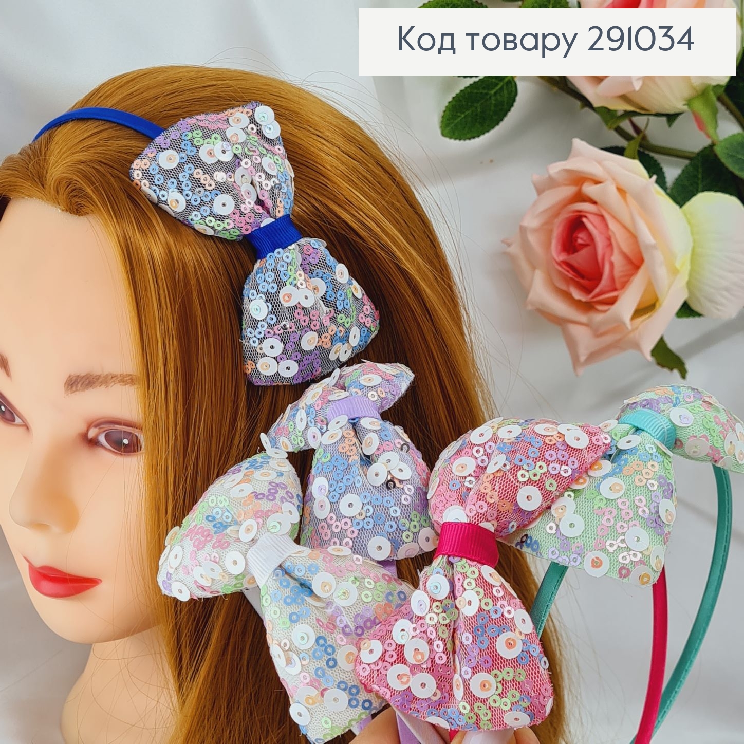 Обруч пластик с Бантиком в паетках с бусинками, Голубого цвета 291336 фото