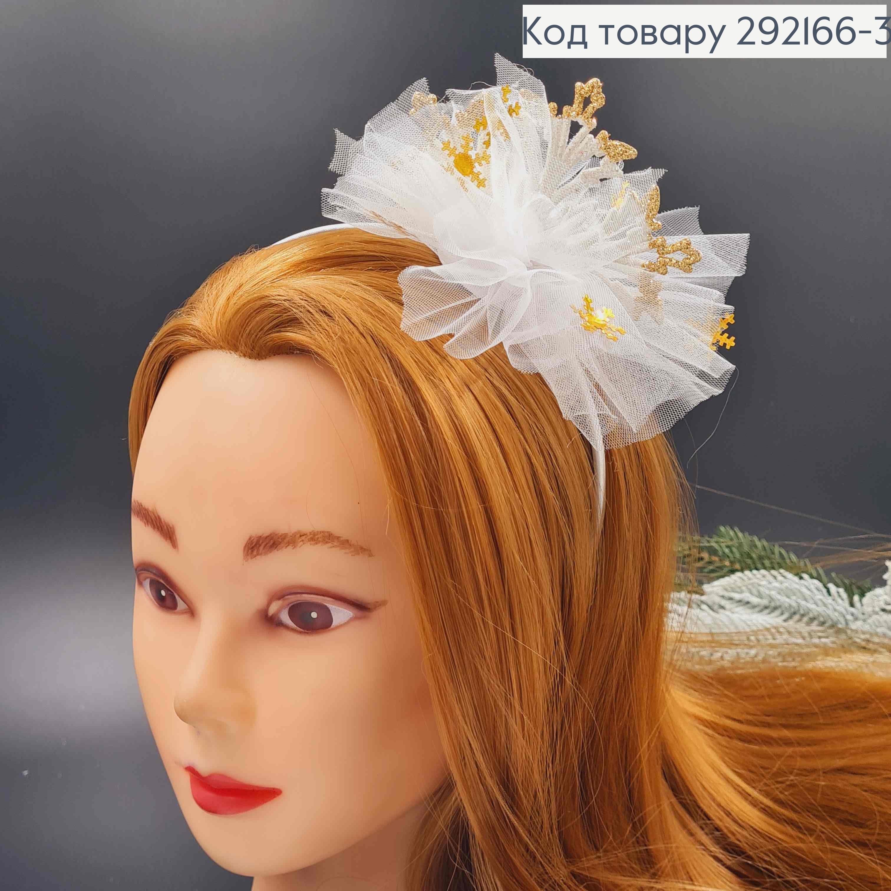 Обруч металлический, БЕЛАЯ+ЗОЛОТО Снежинка с фатином, ручная работа, Украина